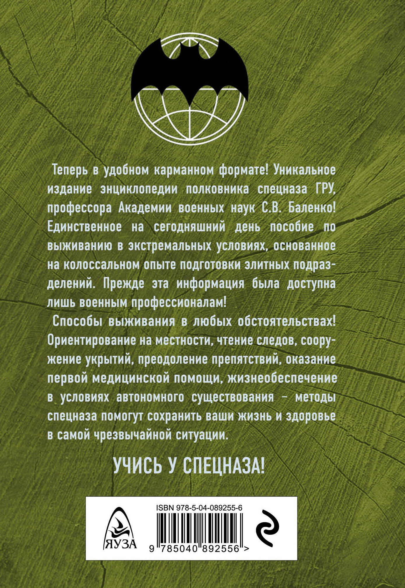 Теперь в удобном карманном формате! Уникальное издание энциклопедии полковника спецназа ГРУ, профессора Академии военных наук С.В. Баленко! Единственное на сегодняшний день пособие по выживанию в экстремальных условиях, основанное на колоссальном опыте подготовки элитных подразделений. Прежде эта информация была доступна лишь военным профессионалам! Способы выживания в любых обстоятельствах! Ориентирование на местности, чтение следов, сооружение укрытий, преодоление препятствий, оказание первой медицинской помощи, жизнеобеспечение в условиях автономного существования - методы спецназа помогут сохранить ваши жизнь и здоровье в самой чрезвычайной ситуации. УЧИСЬ У СПЕЦНАЗА!| Издательство | ООО "Издательство "Эксмо" |