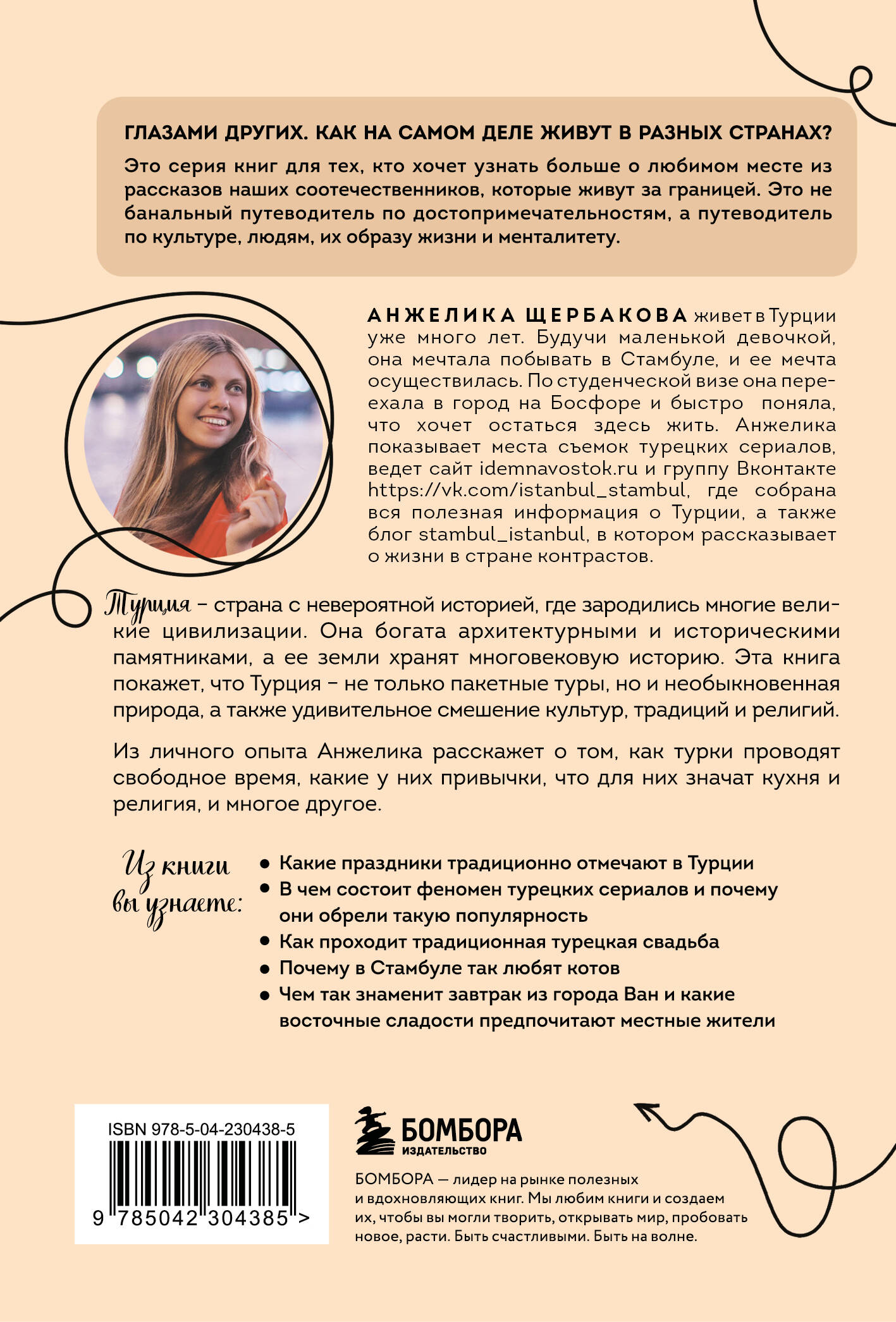 Серия «Глазами других» теперь в удобном мини-формате! Книга «Турция изнутри» посвящена всем, кто влюблен в эту удивительную восточную страну, а также кто хочет узнать больше о быте и нраве турков. Автор книги Анжелика Щербакова знает о Турции все, ведь она живет в стране контрастов уже много лет! В книге она расскажет: • Какие праздники традиционно отмечают в Турции. • В чем состоит феномен турецких сериалов и почему они обрели такую популярность. • Как проходит традиционная турецкая свадьба. • Почему в Стамбуле так любят котов. • Чем так знаменит завтрак из города Ван и какие восточные сладости предпочитают есть местные жители. • Почему в Турции из уборки сделали самый настоящий культ. • Как турки переживают землетрясения. И многое другое!| Издательство | ООО "Издательство "Эксмо" |