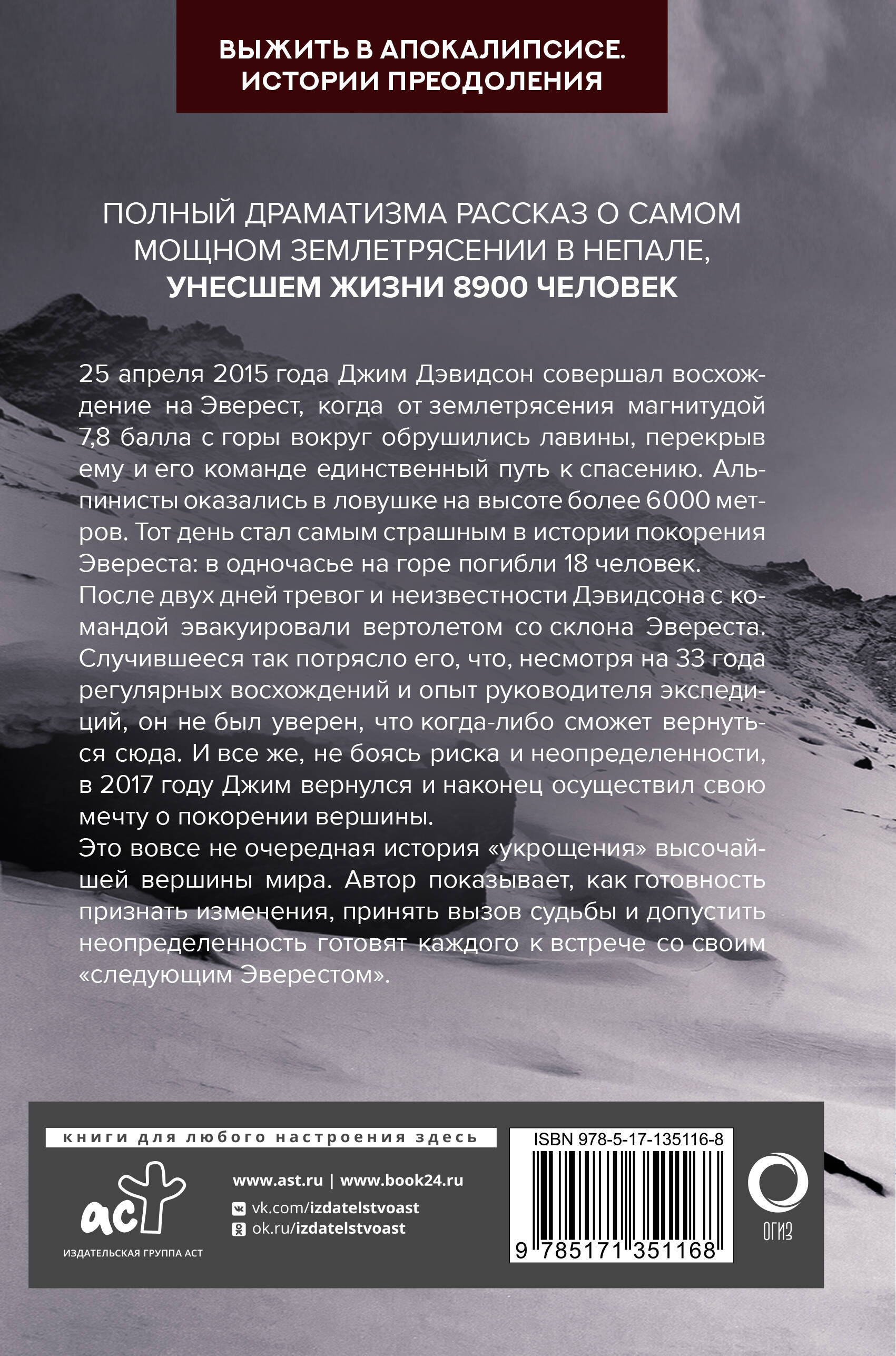 Полный драматизма рассказ о смертоносной лавине на Эвересте и о возвращении ради нового восхождения на вершину от автора бестселлеров New York Times.| Издательство | ИЗДАТЕЛЬСТВО "АСТ" |