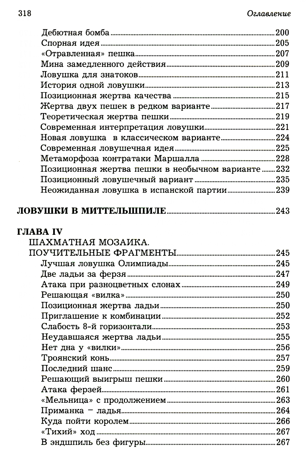 Данную книгу можно рассматривать, как три в одном: во-первых, это сборник разнообразных, но часто типовых ловушек, встречающихся как в дебюте, так и в середине игры и в эндшпиле. Во-вторых, эта книга - учебник по тактике, так как ловушки почти всегда основываются на хитроумных тактических ударах. Наконец, в-третьих - эта книга может быть и решебником, для этого надо отыскивать тактические удары возможные в позициях на диаграммах самому, не заглядывая в текст. Ловушки в шахматах - тема невероятно увлекательная. Удовольствие от того, что соперник попался в расставленную ему сеть всегда громадно, но радость испытываешь и когда удается раскусить чужой замысел и не попасться в ловушку самому. Эта книга поможет делать и то, и другое. Работа с книгой повысит результаты шахматиста любой квалификации.| Издательство | Изд.Калиниченко |