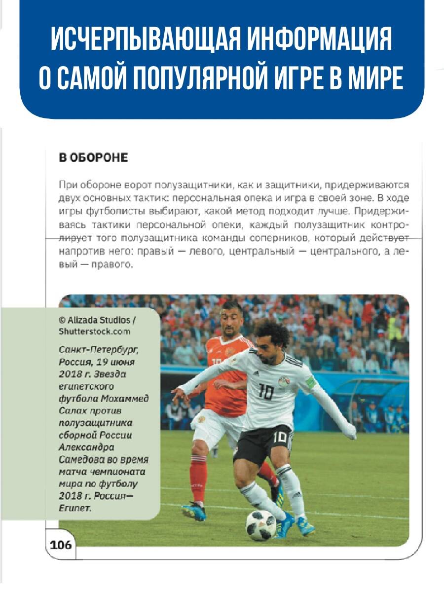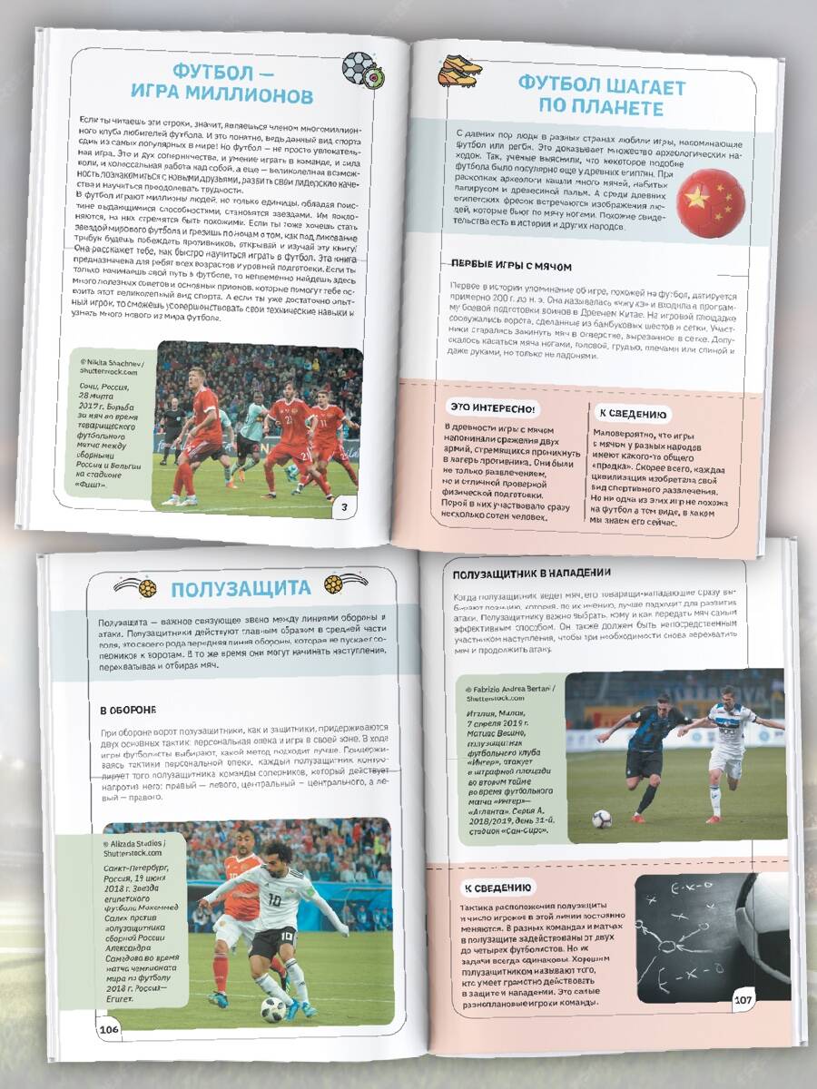 Эта книга посвящена футболу - игре, ставшей для миллионов людей по всему миру не просто развлечением, но и смыслом жизни. Если ты хочешь познать основы футбольного мастерства и присоединиться к сотням тысяч игроков, ежедневно сражающимся за мяч, это издание станет для тебя незаменимым практическим руководством. Здесь подробно описываются правила великой игры, анализируются футбольная тактика и стратегия. Зрелищные иллюстрации наглядно демонстрируют, как должен двигаться футболист с мячом и без него, как вести себя в полузащите и на что обратить внимание, играя в роли нападающего. Кроме того, рассказывается о самых значимых соревнованиях в мире футбола и командах, достигших выдающихся результатов в этом виде спорта. Из этой книги ты узнаешь, как правильно наносить удары по мячу, принимать его и отдавать пас, как играть головой и многое другое. А применив эту теоретическую базу во время игры, ты, без сомнения, очень скоро поймешь, что стать настоящим футболистом можно довольно быстро, и это совсем не сложно. Для среднего школьного возраста.