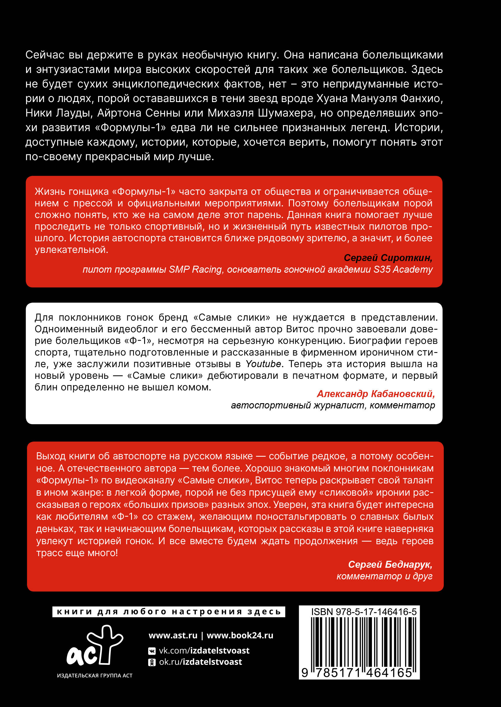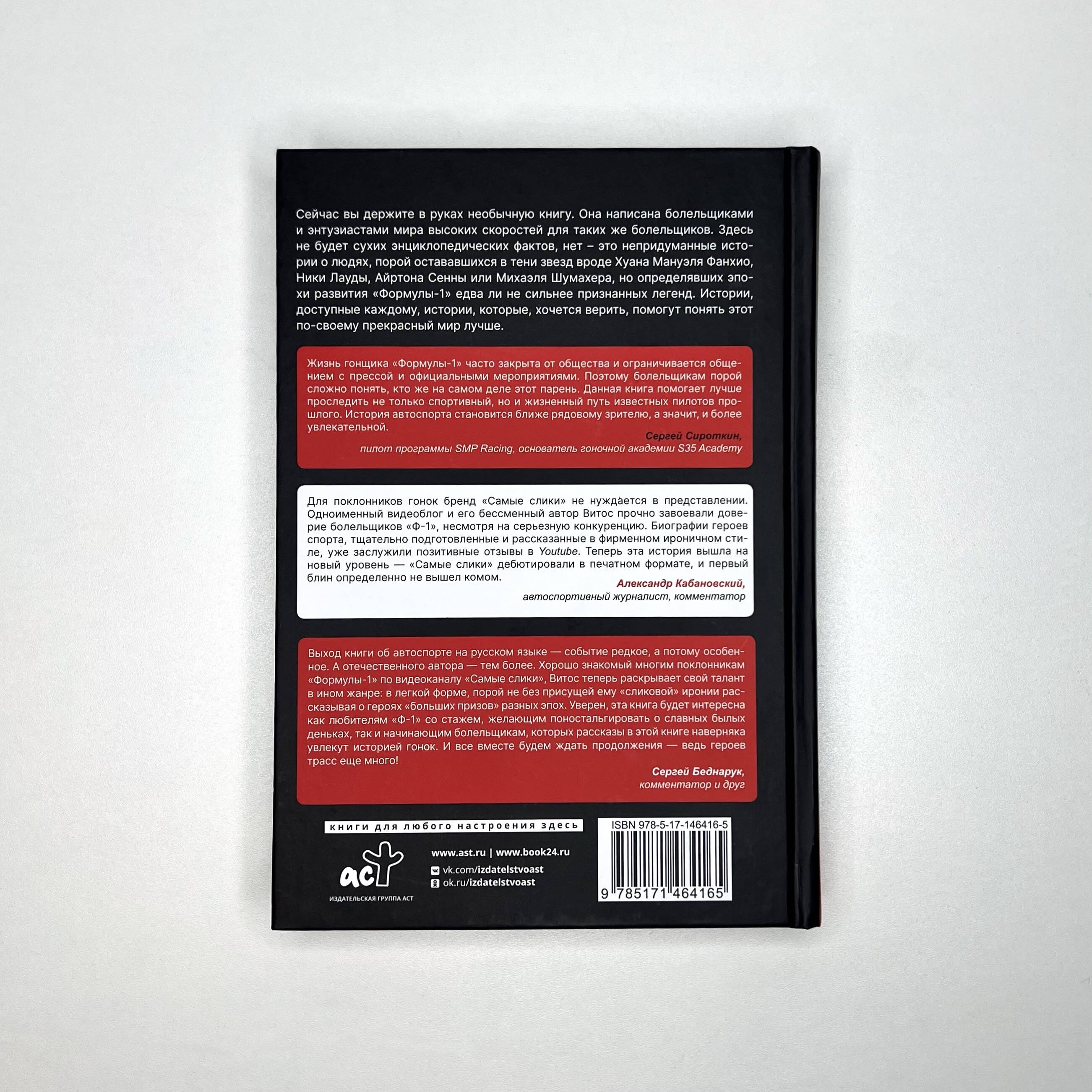«Самые слики. Хроники "Формулы-1"» - книга, основанная на материалах видеоблога «Самые слики». Хотя многие из вошедших в книгу хроник можно посмотреть в видеоформате, поверьте, отличия есть, и они весьма принципиальные! Если творчество канала воспринимать как рок-музыку - бескомпромиссную и жестковатую для неподготовленного слушателя, - то книга представляет собой скорее симфоническую версию известных хитов. Она исполнена в более классическом стиле, но не лишена фирменного шарма. Несмотря на то что автором указан один человек, настоящая книга - это коллективный труд: в работе над ней приняла участие целая команда - оркестр единомышленников. Над созданием «шасси» трудились энтузиасты, люди, влюбленные в автоспорт, люди разных гоночных пристрастий и разной степени вовлеченности в историю.| Издательство | АСТ |