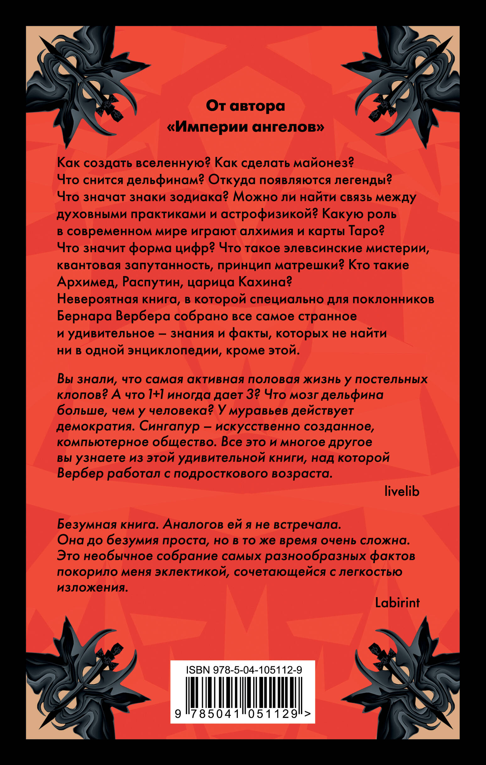 Собрание удивительных фактов от автора «Империи ангелов». Бернар Вербер начал составлять этот том еще будучи подростком. Он включал в него все то, что казалось ему загадочным и малоизвестным. Самая странная и увлекательная энциклопедия из тех, что вы когда-либо брали в руки! Из нее вы узнаете о социальном устройстве муравейника, мозге дельфинов, половой жизни клопов и о многом другом.| Издательство | ООО "Издательство "Эксмо" |