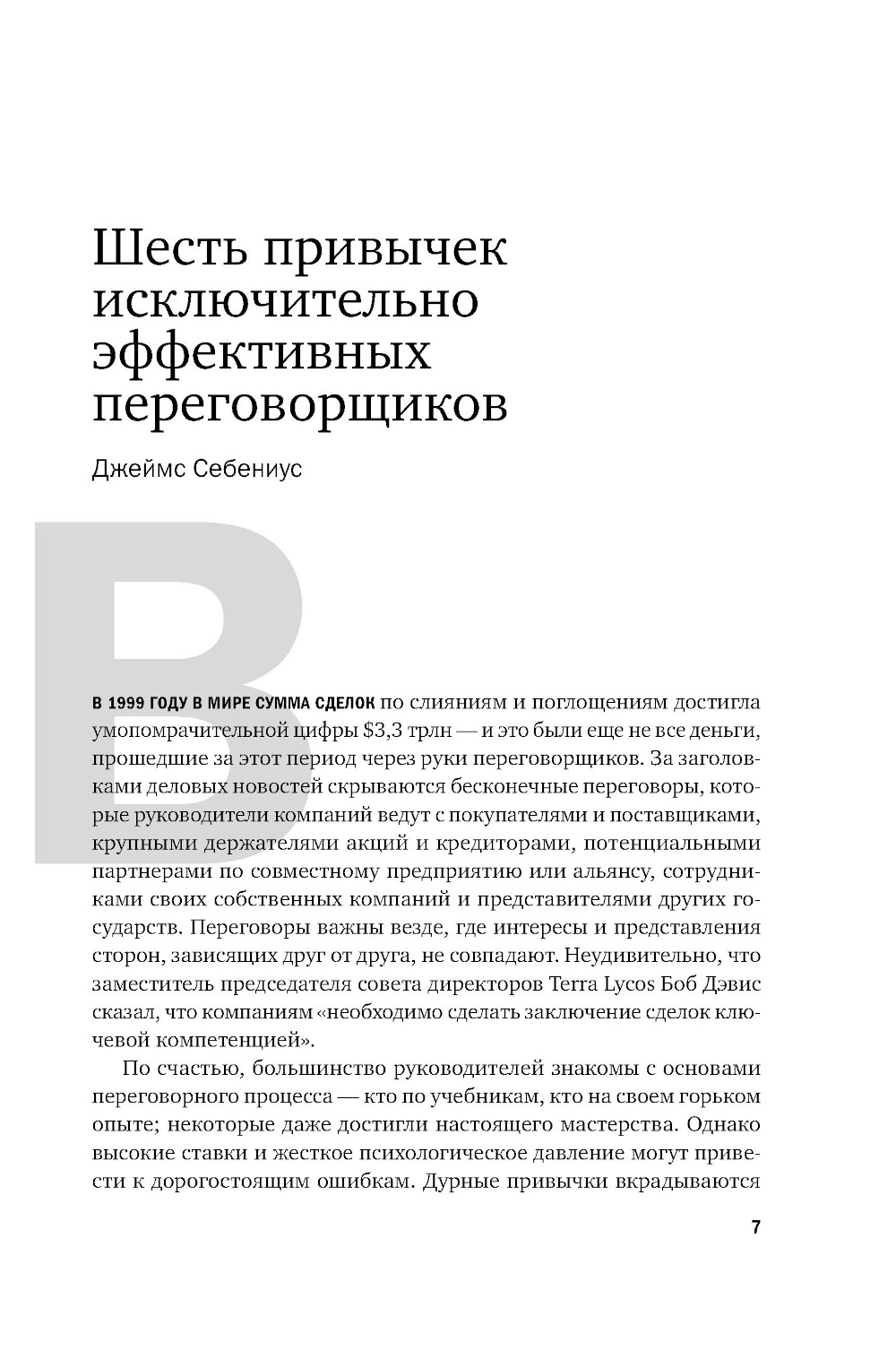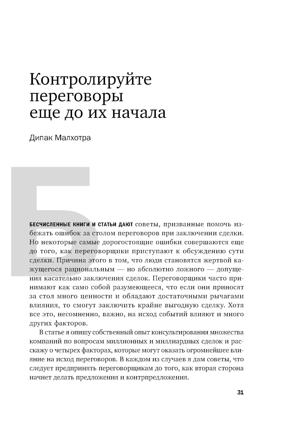 Harvard Business Review - главный деловой журнал в мире. Представляем новый сборник из серии «HBR: 10 лучших статей», посвященный проблемам ведения переговоров и заключения сделок. Любое взаимодействие в бизнесе - с клиентами и поставщиками, партнерами и инвесторами, сотрудниками и кандидатами - подразумевает переговоры. Вы узнаете, как избежать ошибок на всех этапах переговоров: независимо от того, хотите ли вы добиться лучших условий при приеме на работу или заключить крупную сделку, в которую вовлечено множество сторон. Что делать, если переговоры зашли в тупик, стороны несговорчивы, а отступить и проиграть нельзя? Как переговорщикам научиться контролировать свои эмоции и управлять эмоциями других? В чем особенности межкультурных стилей общения при заключении международных сделок? Чему представители бизнеса могут научиться у переговорщика по освобождению заложников при ведении жестких переговоров? Когда стоит отказаться от сделки? Благодаря советам, приемам и стратегиям из этого сборника вы сможете находить скрытые возможности, влиять на ход переговоров и заключать контракты на выгодных вам условиях.| Издательство | Альпина Паблишер |