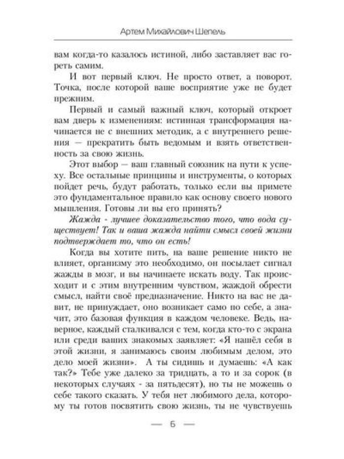 Эта книга - ваш шанс изменить жизнь к лучшему. Автор, пройдя через собственные кризисы и собрав мудрость десятков успешных людей, делится не вдохновляющими цитатами, а реальными инструментами: - как выйти на путь финансовой независимости, - как найти своё истинное предназначение, - как смело уйти с нелюбимой работы и начать делать то, что зажигает вас изнутри, - и главное - как оставаться счастливым, даже когда мир рушится вокруг. Здесь нет пустых обещаний - только проверенные практики, которые помогли автору подняться с самого дна и создать жизнь, полную смысла, свободы и радости. Не проходи мимо - это твой шанс начать новую успешную жизнь!| Издательство | Рипол Классик |