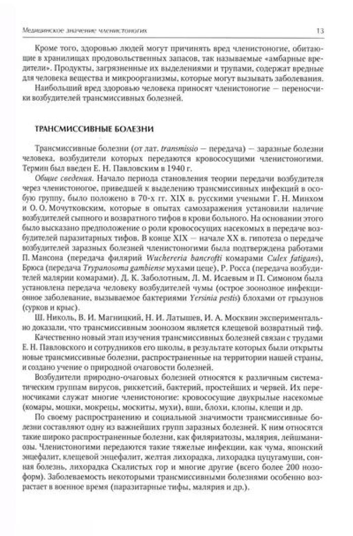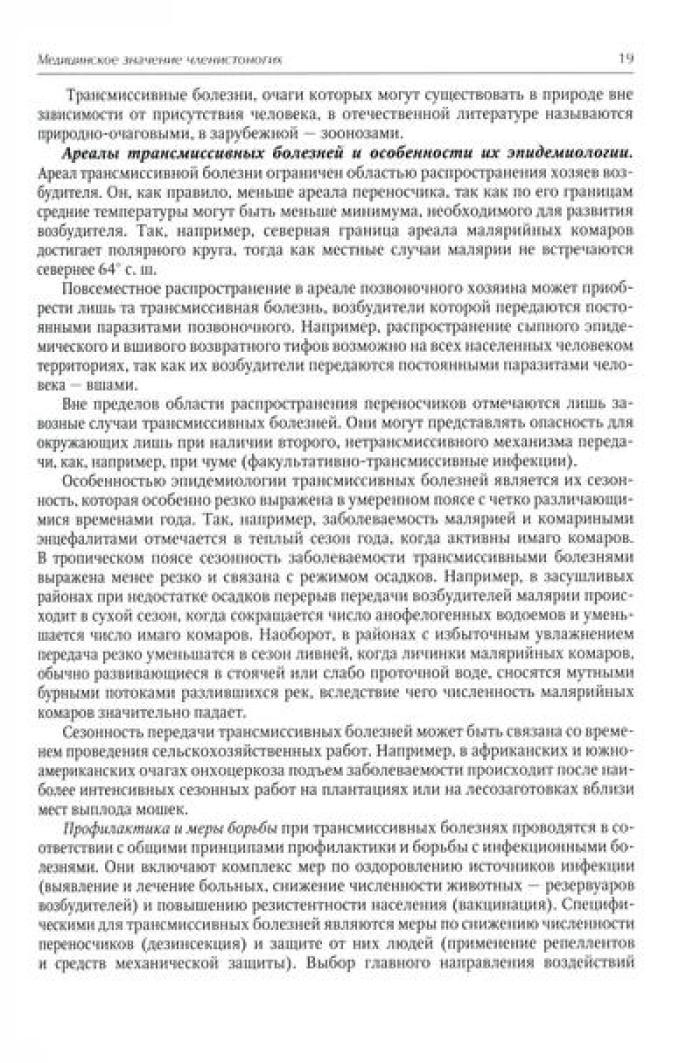 В руководстве излагаются сведения о медицинском значении членистоногих, составляющие предмет изучения медицинской арахноэнтомологии. Основное внимание уделяется частным разделам медицинской арахноэнтомологии, в первую очередь описанию насекомых и клещей как основных переносчиков возбудителей трансмиссивных болезней в Российской Федерации. В кратком объеме приводятся сведения о некоторых бытовых насекомых и вредителях запасов продовольствия. Для каждой группы членистоногих и для ряда доминирующих видов приводятся сведения об их строении, циклах развития, распространении, местах обитания, методах сбора, их медицинском значении и методах борьбы. Издание предназначено для врачей-паразитологов, зоологов-энтомологов, эпидемиологов, а также других специалистов санитарно-эпидемиологических учреждений. Кроме того, оно может быть полезно для врачей других специальностей, в том числе клинических, которым в своей практической деятельности приходится сталкиваться с трансмиссивными болезнями, а также для студентов медицинских вузов при изучении вопросов медицинской паразитологии и эпидемиологии трансмиссивных инфекций.| Издательство | СпецЛит |