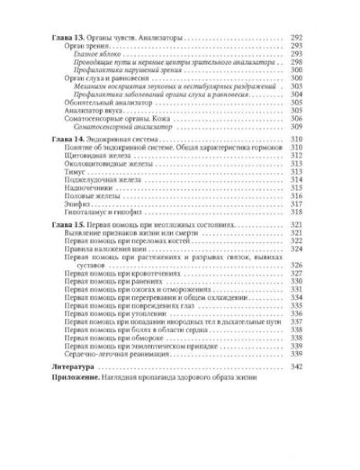 Учебное пособие содержит наиболее важные сведения по анатомии, физиологии, гигиене человека и оказанию первой помощи при неотложных состояниях. В нем представлены основные термины и понятия, общие и частные данные о строении и функциях человеческого организма, изложены основы гигиены и рекомендации по соблюдению здорового образа жизни. Глава, посвященная оказанию первой помощи при неотложных состояниях, продиктована необходимостью знания основных правил оказания само- и взаимопомощи в экстренных ситуациях, для чего важно иметь хотя бы элементарные представления о строении человеческого организма и протекающих в нем физиологических процессах. Пособие рассчитано на различные категории населения: прежде всего на учащихся специализированных медицинских классов, студентов спортивных и педагогических вузов, а также факультетов психологии; представленные сведения будут полезны абитуриентам, поступающим в медицинские вузы, и читателям, стремящимся к познанию «тайн человеческого тела».| Издательство | СпецЛит |