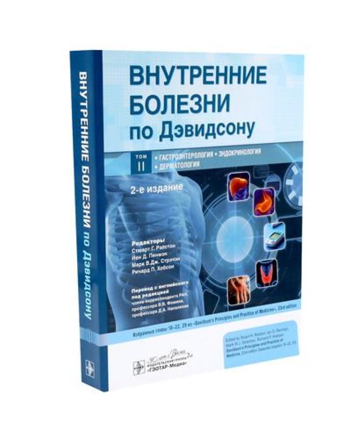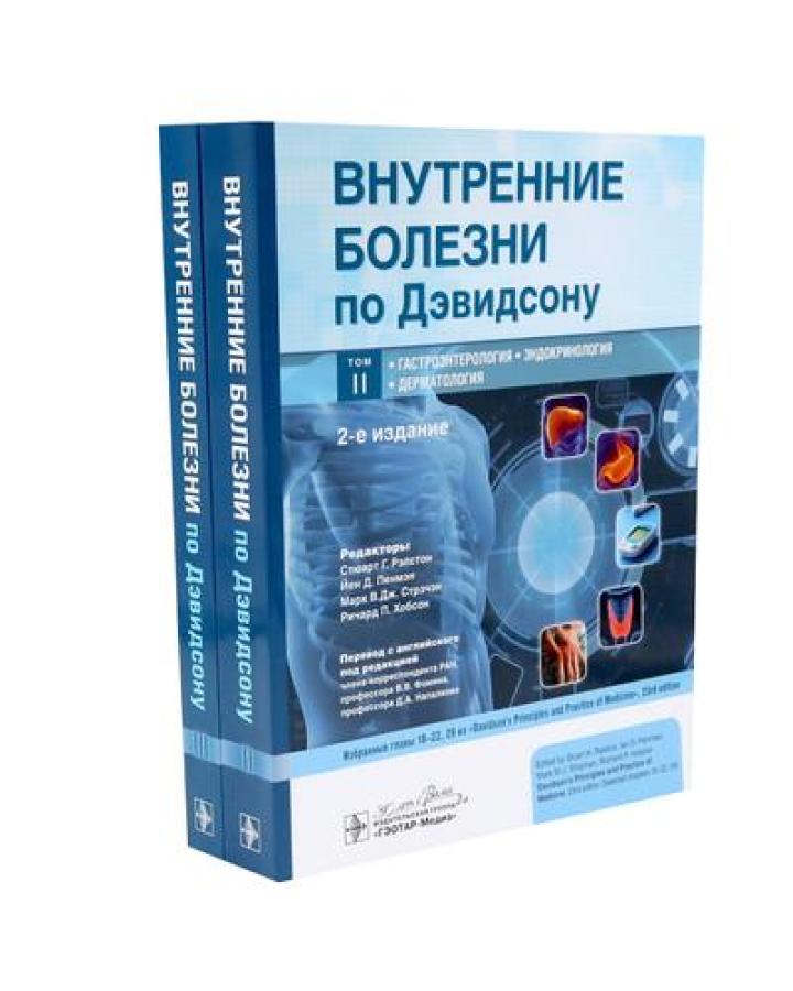Руководство «Внутренние болезни по Дэвидсону» пережило уже 22 переиздания и до сих пор остается одним из самых востребованных у студентов медицинских вузов. Оно было переведено на многие языки мира и получило многочисленные призы. Уникальная особенность данного издания - подача материала в тесной связи патогенеза с клинической медициной. Это особенно важно не только для студентов, но и для уже более опытных специалистов, которым нужно быстро освежить в памяти ранее изученный материал. Первый том знакомит читателя с такими разделами медицины, как кардиология, пульмонология, нефрология и урология, а также ревматология - с особым вниманием к заболеваниям опорно-двигательного аппарата. Во втором томе комплексно освещены вопросы патофизиологии, клинических особенностей и методов лечения патологических состояний, встречающихся в гастроэнтерологии, эндокринологии и дерматологии. В третьем томе освещены темы клинических решений и назначений, лабораторных и биохимических исследований, особенностей подросткового и пожилого возраста, онкологии и гематологии. Четвертый том посвящен неврологии, терапевтической офтальмологии и психиатрии, а также современным методам диагностики и лечения инсульта. В пятом томе изложены сведения о широком спектре инфекционных заболеваний и работе иммунной системы, о здоровье населения и проблемах экологии, а также о современных подходах к неотложным состояниям и укусам ядовитых животных. Руководство прекрасно иллюстрировано, что вместе со структурированностью и простотой изложения значительно облегчает усвоение материала. Книга подготовлена на основании новейших источников информации; в ее создании принимали участие ведущие мировые специалисты в области внутренних болезней.| Издательство | ГЭОТАР-Медиа |