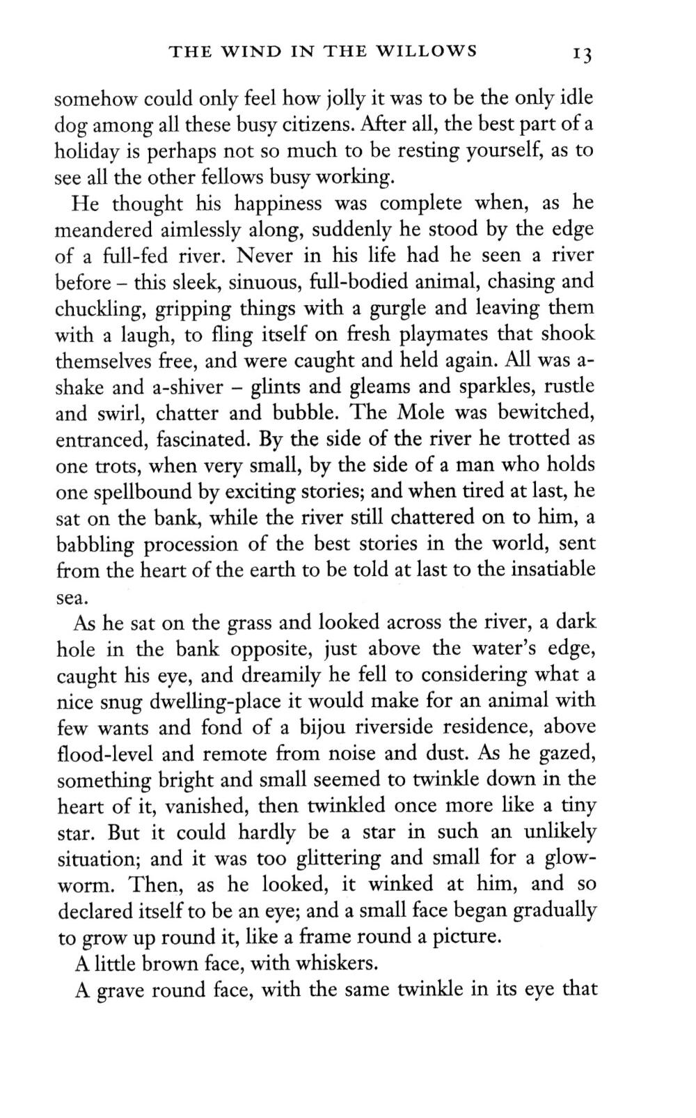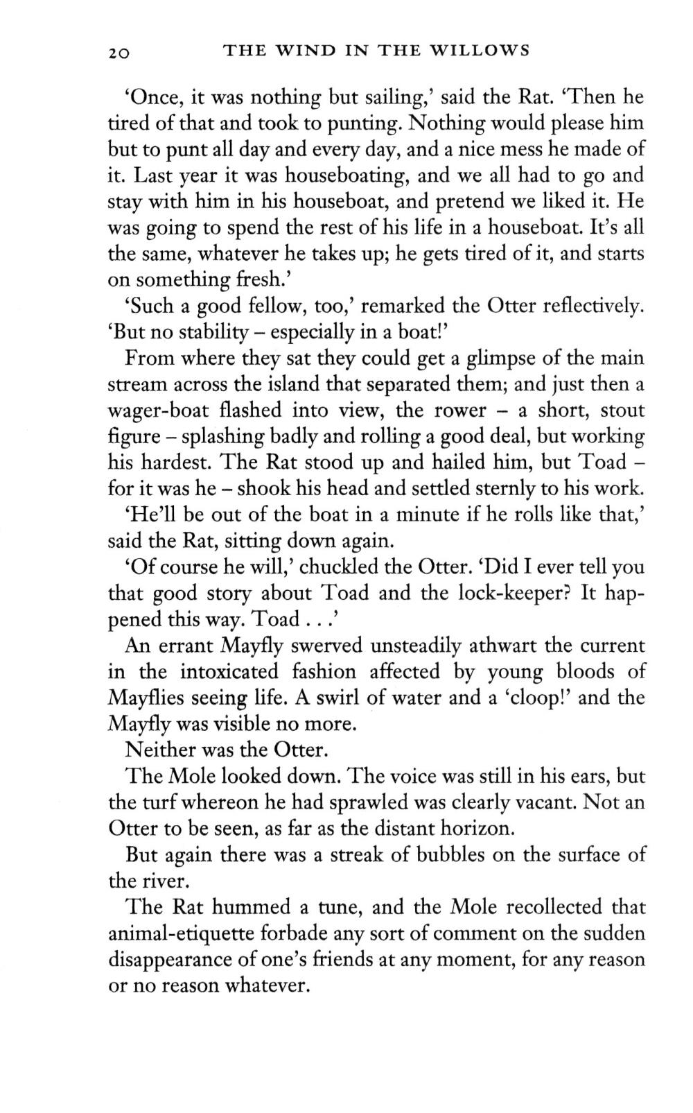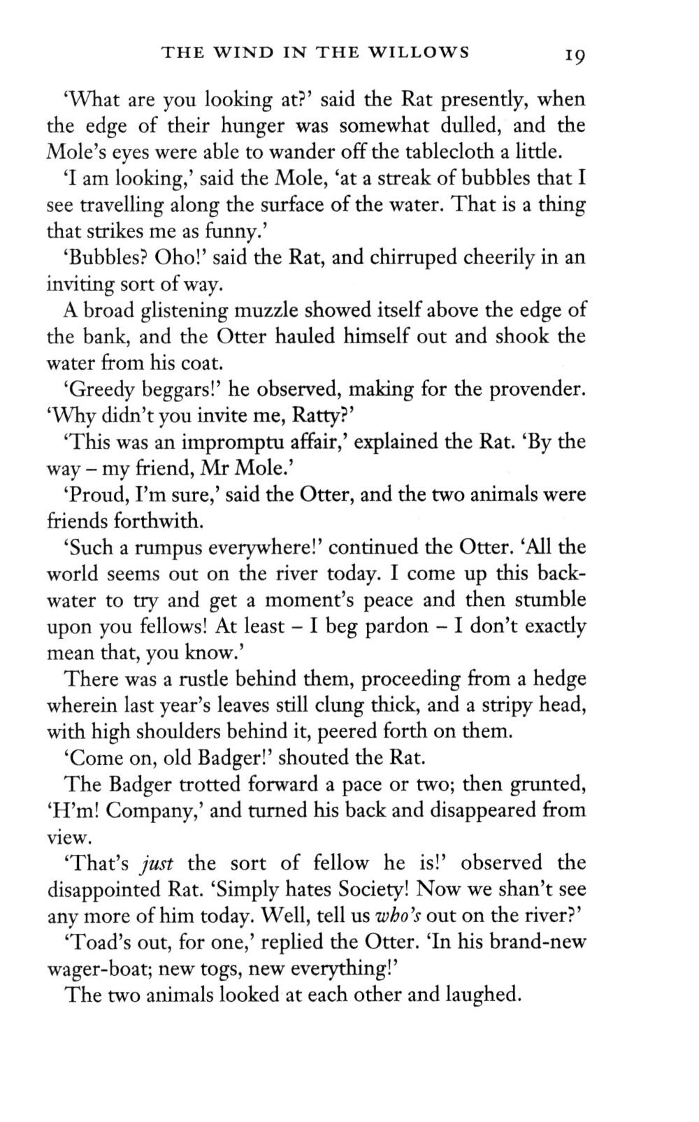 Far from fading with time, Kenneth Grahame`s classic tale of fantasy has attracted a growing audience in each generation. Rat, Mole, Badger and the preposterous Mr Toad, have brought delight to many through the years with their odd adventures on and by the river, and at the imposing residence of Toad Hall.