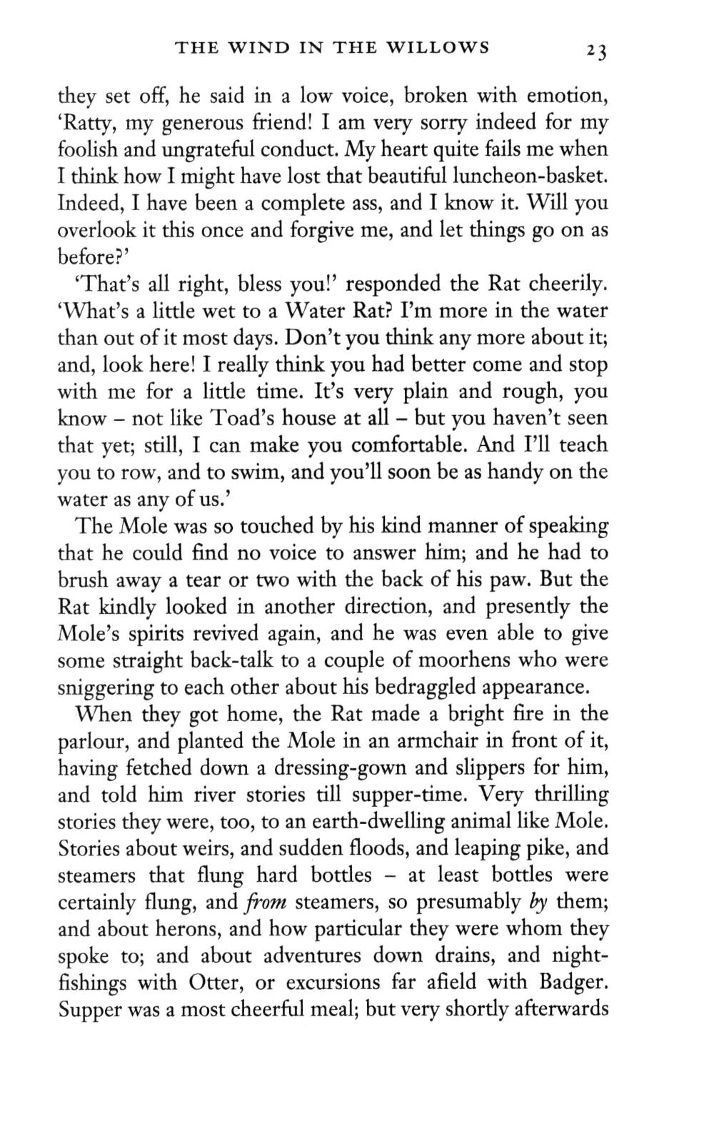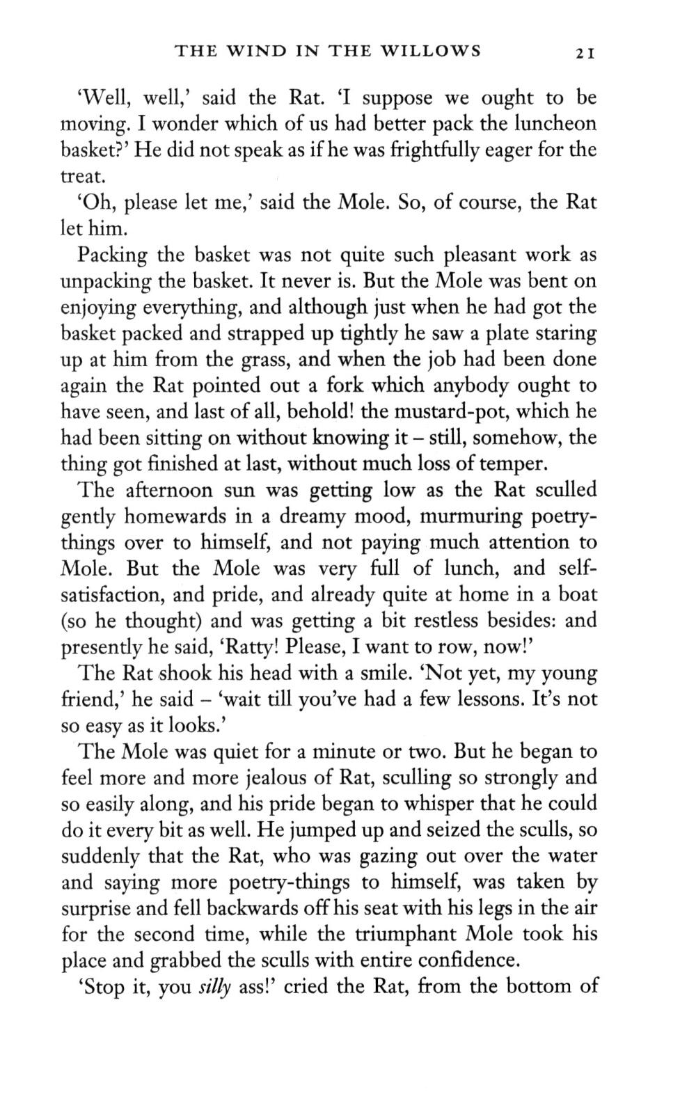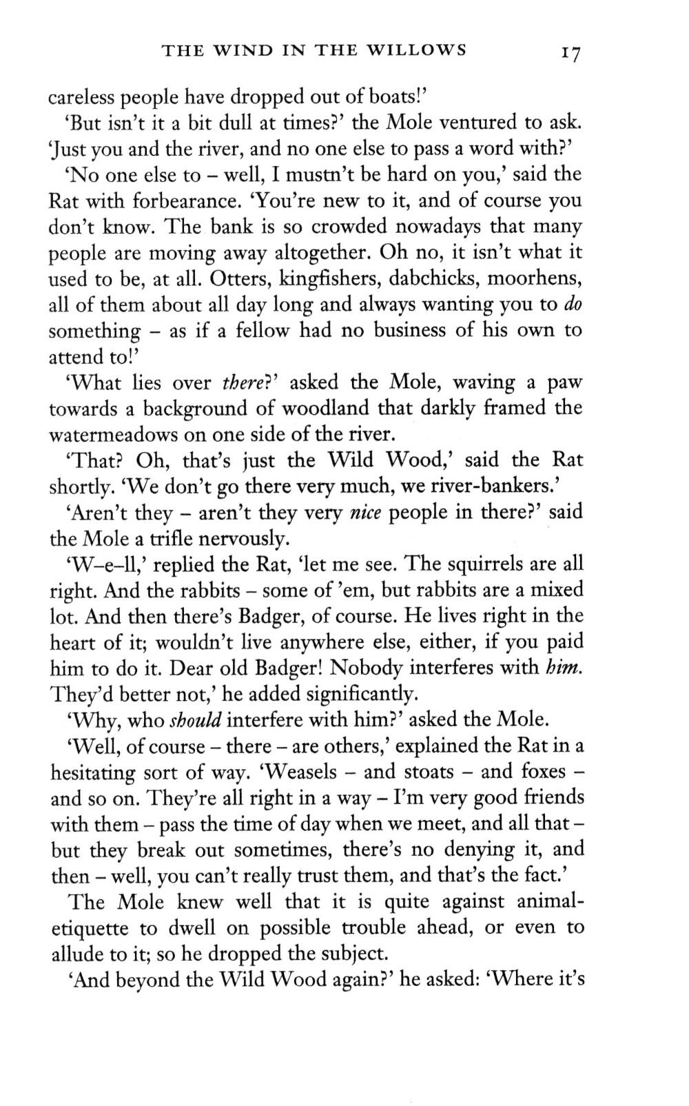 Far from fading with time, Kenneth Grahame`s classic tale of fantasy has attracted a growing audience in each generation. Rat, Mole, Badger and the preposterous Mr Toad, have brought delight to many through the years with their odd adventures on and by the river, and at the imposing residence of Toad Hall.