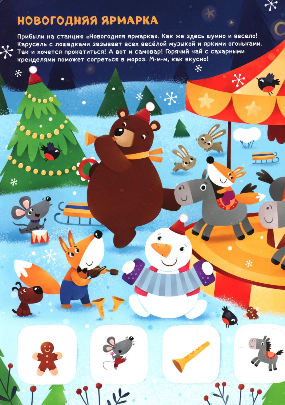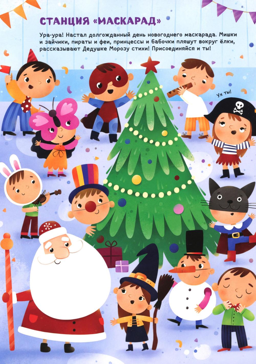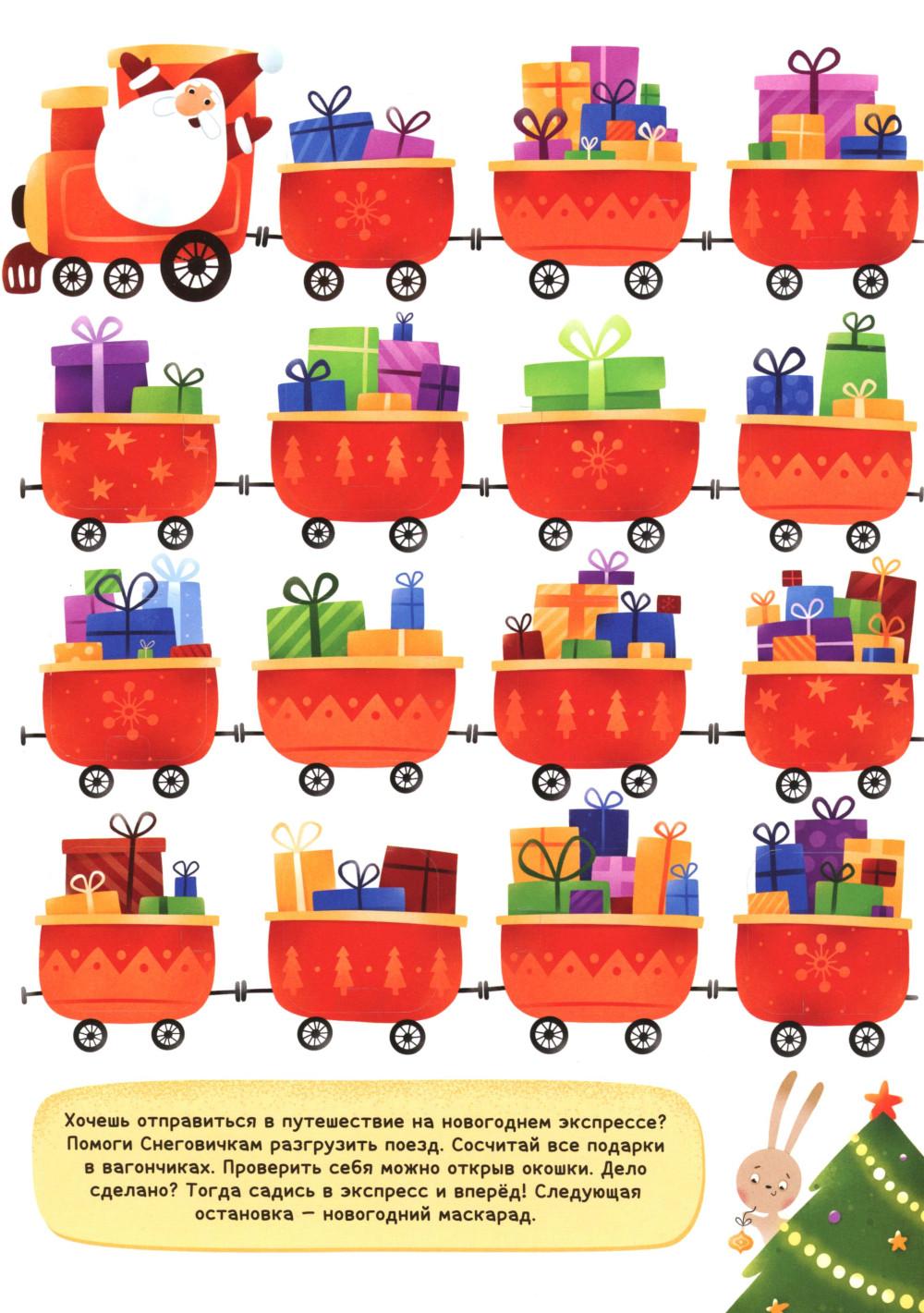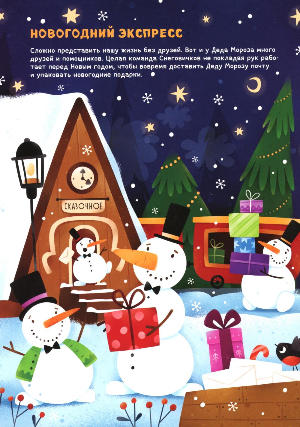 «Новогодний экспресс» - книга-игра, где вас ждут весёлые приключения на сказочном поезде! Вместе со Снеговичками отправляйтесь в увлекательное путешествие по праздничным станциям, полным интересных игр, задачек, заданий и волшебных окошек. По дороге вам встретятся радостные ребята, милые зверюшки и целый парад Дедушек Морозов. Скорее в путь!