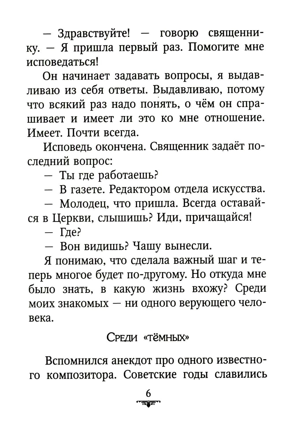 Человек поверил в Бога и входит в Церковь. Что ждёт его там? Героиня этой книги была воспитана на советских стереотипах: в храмах можно встретить только тёмных, безграмотных бабушек. Но мир, в который она попала, оказался совсем иным, познакомил её с протоиереем Георгием Бреевым, игуменией Новодевичьего монастыря Серафимой (Чёрной), Алексеем Баталовым, Сергеем Андриякой, великой княгиней Ольгой Николаевной Куликовской-Романовой и другими интереснейшими людьми.| Издательство | Синопсисъ |