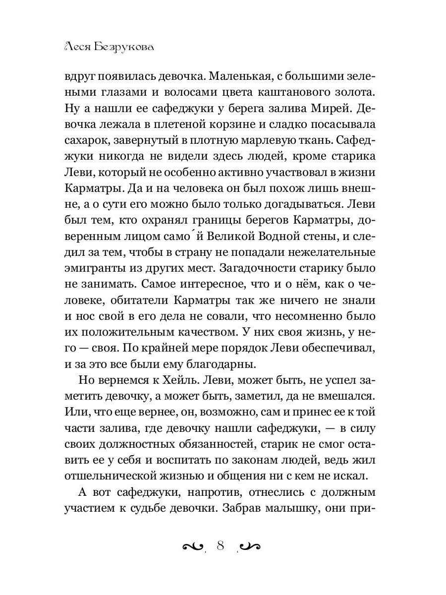 В городке Карматра, что в Модной стране Хорсания живет совершенно обычная девушка по имени Хейль. И именно то, что она является обычным человеком, делает ее самой яркой индивидуальностью в Карматре, ведь этот городок, ровно так же, как и всю Хорсанию, населяют совсем необычные существа, которые людьми не являются. Одними из таких существ, сафеджуками, Хейль и была воспитана в любви и в роскоши. Однако, повзрослев, девушка стала ощущать эту разницу, не только внешнюю, но и внутреннюю. Мысли о том кто же она и откуда там появилась, словно навязчивые идеи стали преследовать Хейль, и в один прекрасный день девушка решила уйти из Карматры, что бы найти ответы на свои вопросы.На пути нашу героиню ждет много приключений и испытаний, без которых невозможно обрести свою подлинную жизнь и найти себя настоящую, а так же верных друзей и искреннюю любовь.| Издательство | Рипол Классик |