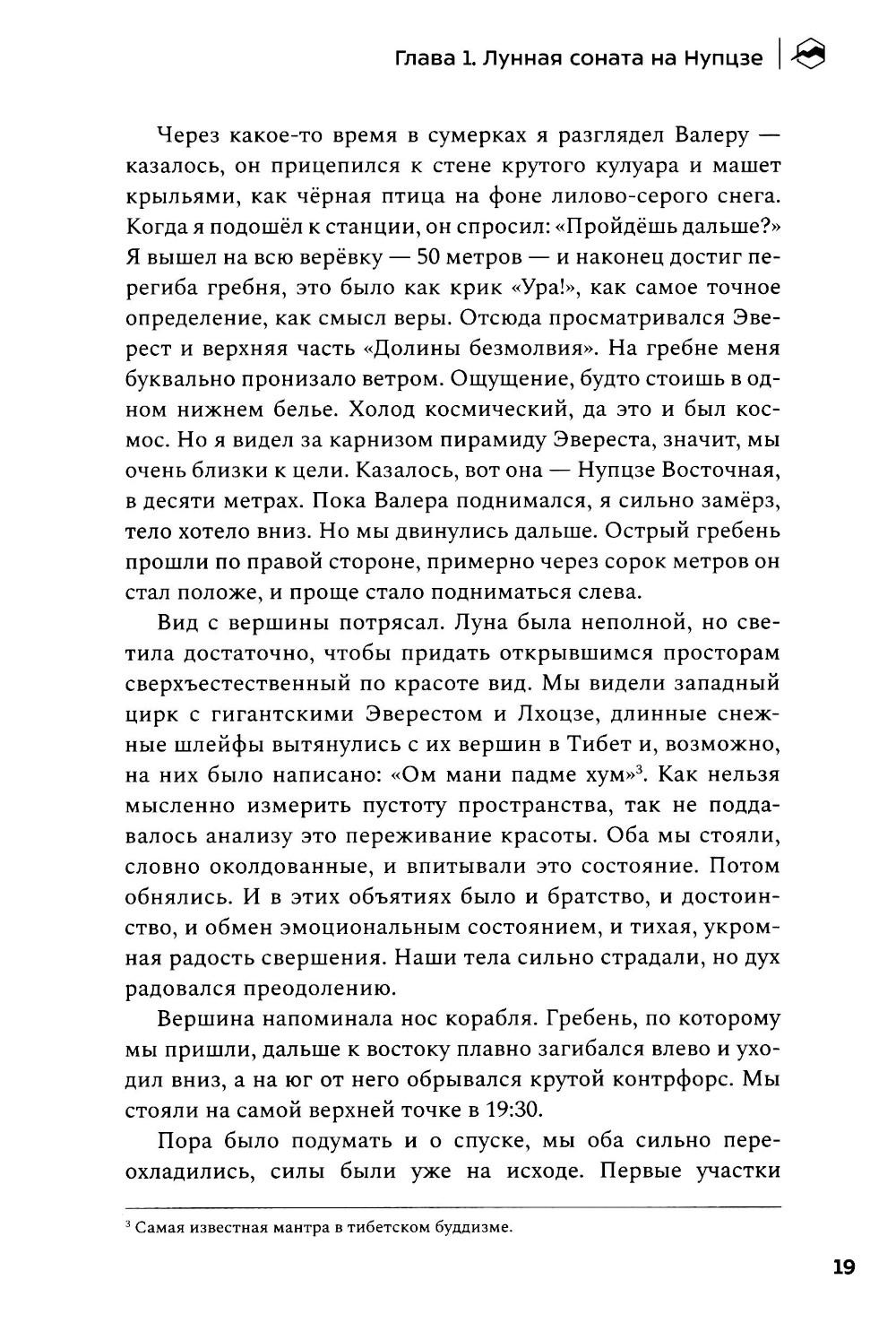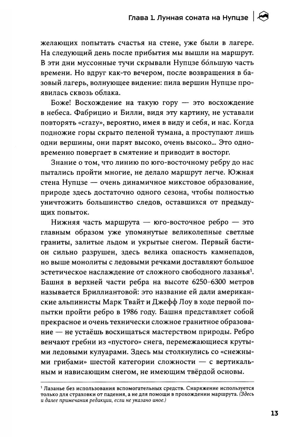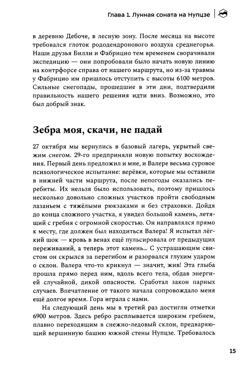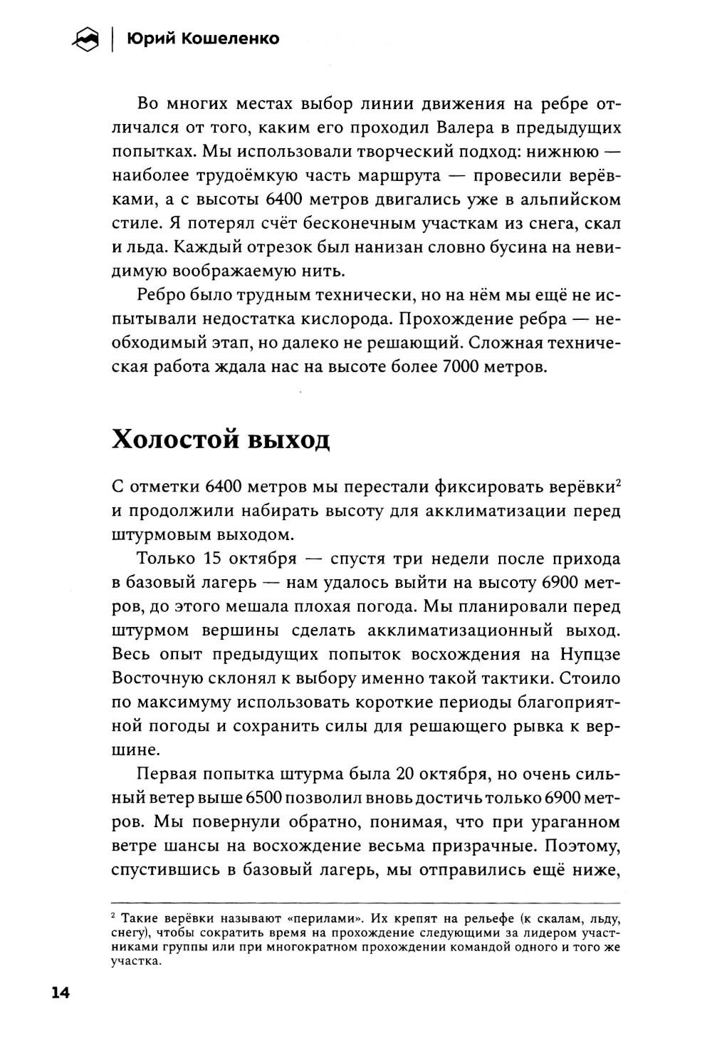 Альпинистская книжка - персональный «зал славы» всякого своего обладателя. И в то же время очень личный документ, в котором раскрывается не только череда спортивных побед, но и отчасти характер человека и широта его стремлений. Перед вами такая альпкнижка - «Книжка альпиниста». Более 40 лет Юрий Кошеленко исследует альпинизм и пределы возможного в горах. В своей книге автор размышляет о предназначении альпинизма и делится переживаниями собственного духовного роста по мере обретения опыта и трансформации представлений о том, что сам Юрий считает краеугольным камнем альпинистской науки, - стиле восхождений. «Книжка альпиниста» - это не список всех совершённых Юрием восхождений в хронологическом порядке, а вдохновляющий рассказ о его пути на мировую арену альпинизма. От дебютных восхождений на Кавказе, закрытия третьего разряда в Узунколе, первых счастливых опытах в команде второразрядников до крупных международных проектов, смелых первопроходов по всему миру, награды Piolets d'Or и определения для себя понятия «чистого стиля».| Издательство | Библиотека Спорт-Марафон |
