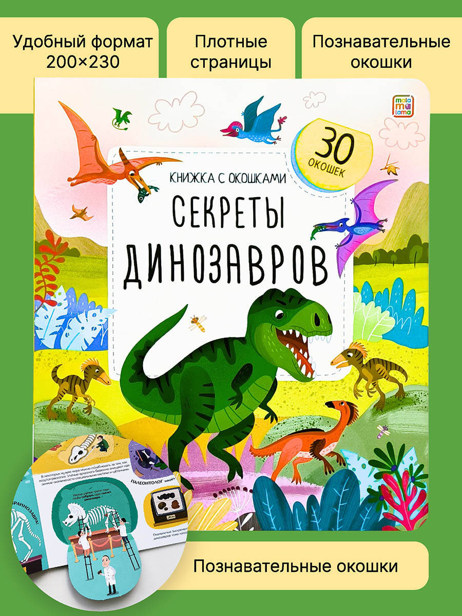 Книжка с окошками "Секреты динозавров" - путеводитель для любознательных малышей, которые готовы отправиться в настоящее путешествие во времени. На страницах книги они смогут поближе познакомиться с удивительными огромными животными, населявшими Землю миллионы лет назад. Внутри - 12 красочных страниц и 29 окошек разной формы, открывая которые дети получат массу интересной и полезной информации о том, как выглядели динозавры, чем они питались и где обитали. В каждом окошке дополнительный факт! Книга сделана из плотного картона с ламинированной обложкой. Окошки расположены на каждой странице! Читайте книги от торговой марки Malamalama вместе с ребёнком - проводите время интересно и с пользой!| Издательство | Производитель сторонней продукции |