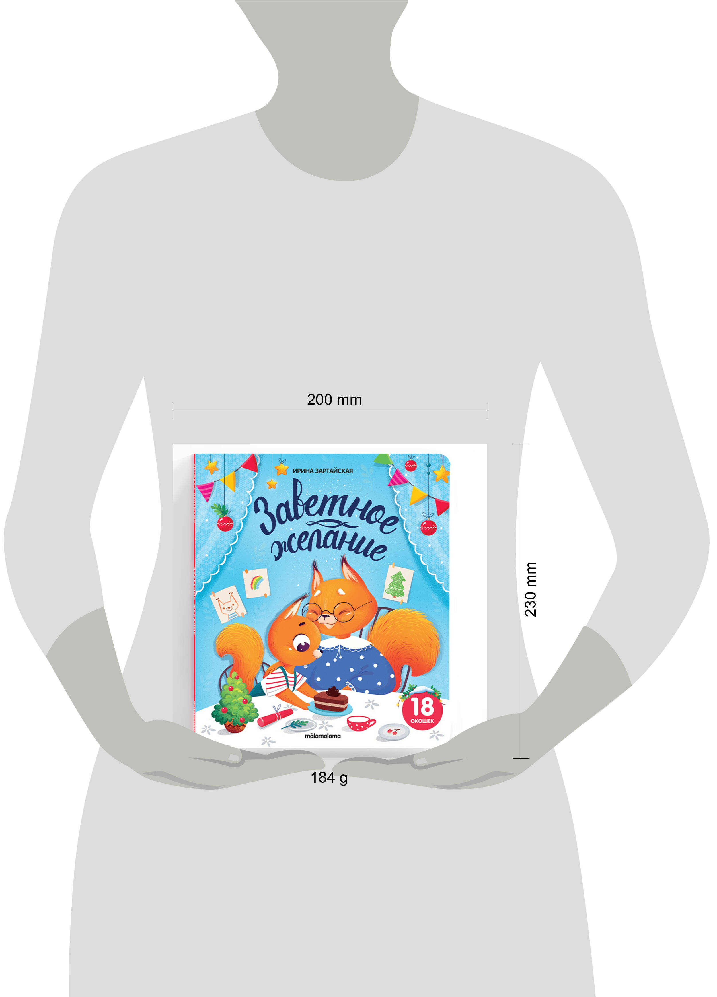 Добрая поучительная сказка "Заветное желание" современного автора Ирины Зартайской от торговой марки Malamalama - это яркие иллюстрации, оригинальный текст, красочные большие окошки, которые помогают окунуться в новогоднюю атмосферу. Вместе с Бельчонком ваш малыш окунётся в предпраздничную атмосферу, будет готовиться к встрече Нового года, наряжать ёлку, мечтать о подарках... И откроет для себя, что может быть важнее, чем подарки, как важно ценить своих близких, и как люди порой нуждаются в поддержке и внимании. Читайте книжку с окошками "Заветное желание" - отправляйтесь в доброе новогоднее приключение!| Издательство | АЛЬ ПАКО ООО |