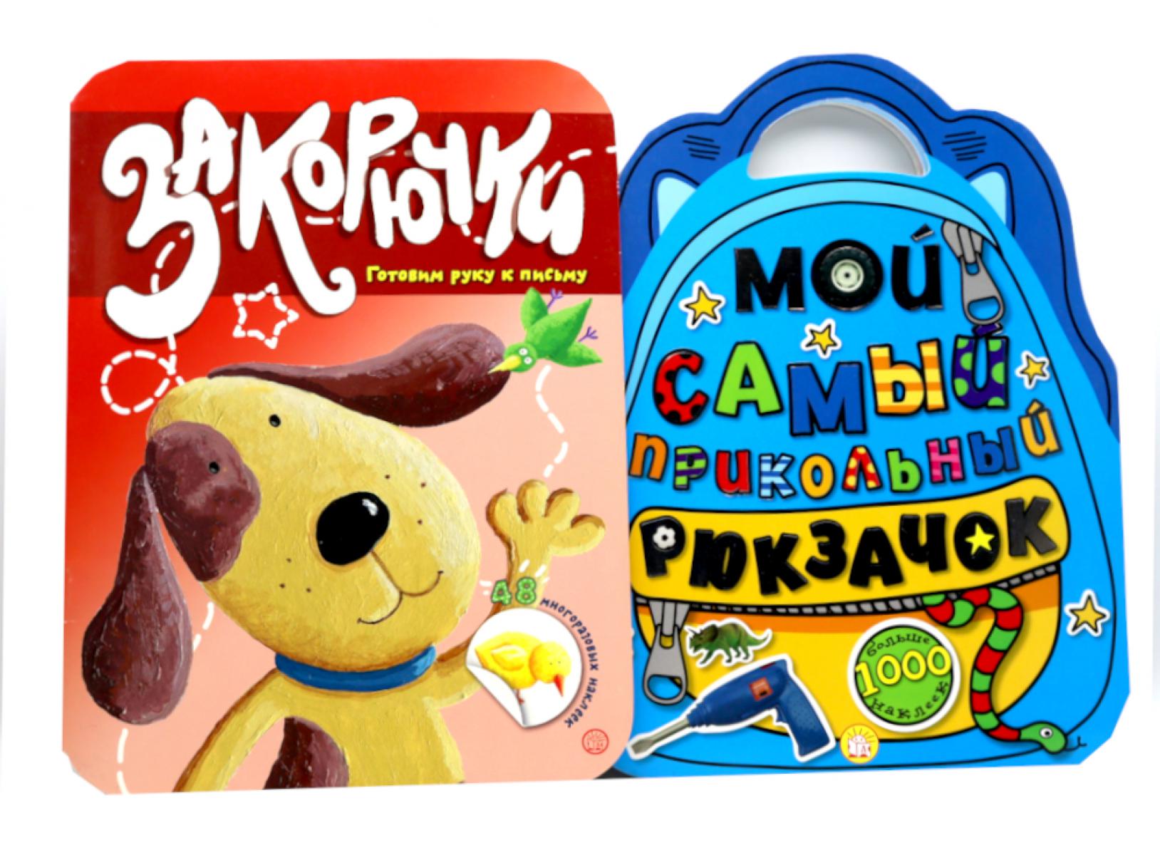 Книжки с наклейками: Закорючки. Готовим руку к письму. Самый прикольный рюкзачок (комплект из 2-х книг)