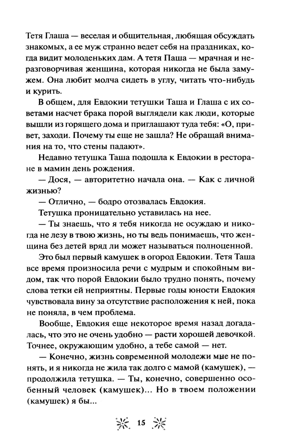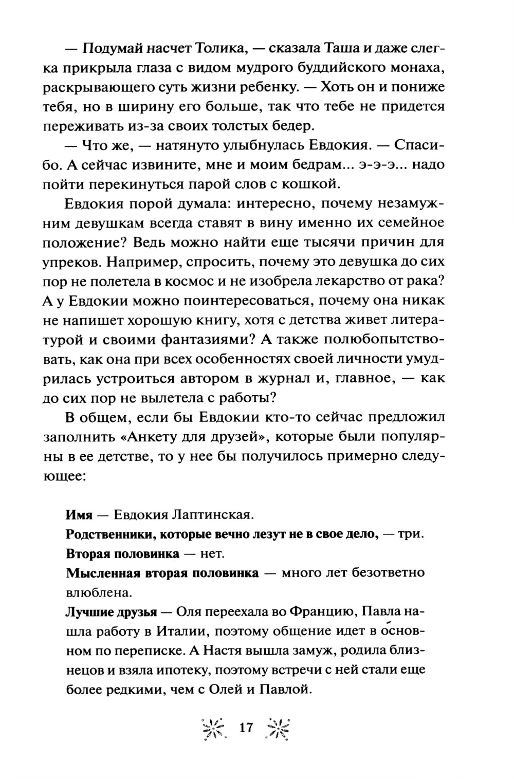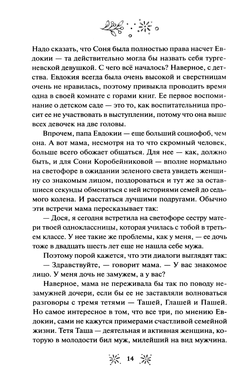 Евдокия Лаптинская - скромная журналистка, которая привыкла прятаться в тени начальницы-тирана и безответно вздыхать по красавцу-коллеге. Но что если ее скучная жизнь - всего лишь иллюзия? Когда случай приводит Досю в книжный магазин «Под звездами», где персонажи книг оживают, она обнаруживает в себе редкий дар, способный менять реальность. Теперь Досе предстоит разгадать тайну исчезнувшей подвески Лесной Девы, научиться управлять своими способностями и выяснить - куда пропала ее любимая писательница и почему за ней следит загадочный исследователь Марк Снежин? Как связаны ночные кошмары сотрудников и странный дом в лесу? И кто на самом деле ее начальница? В загадочном магазинчике Дося находит не только подруг, но и то, что скрывается за книжными полками. Хватит ли у нее смелости принять свою новую жизнь, где даже любовь может оказаться не такой, как в ее мечтах?| Издательство | Манн, Иванов и Фербер |