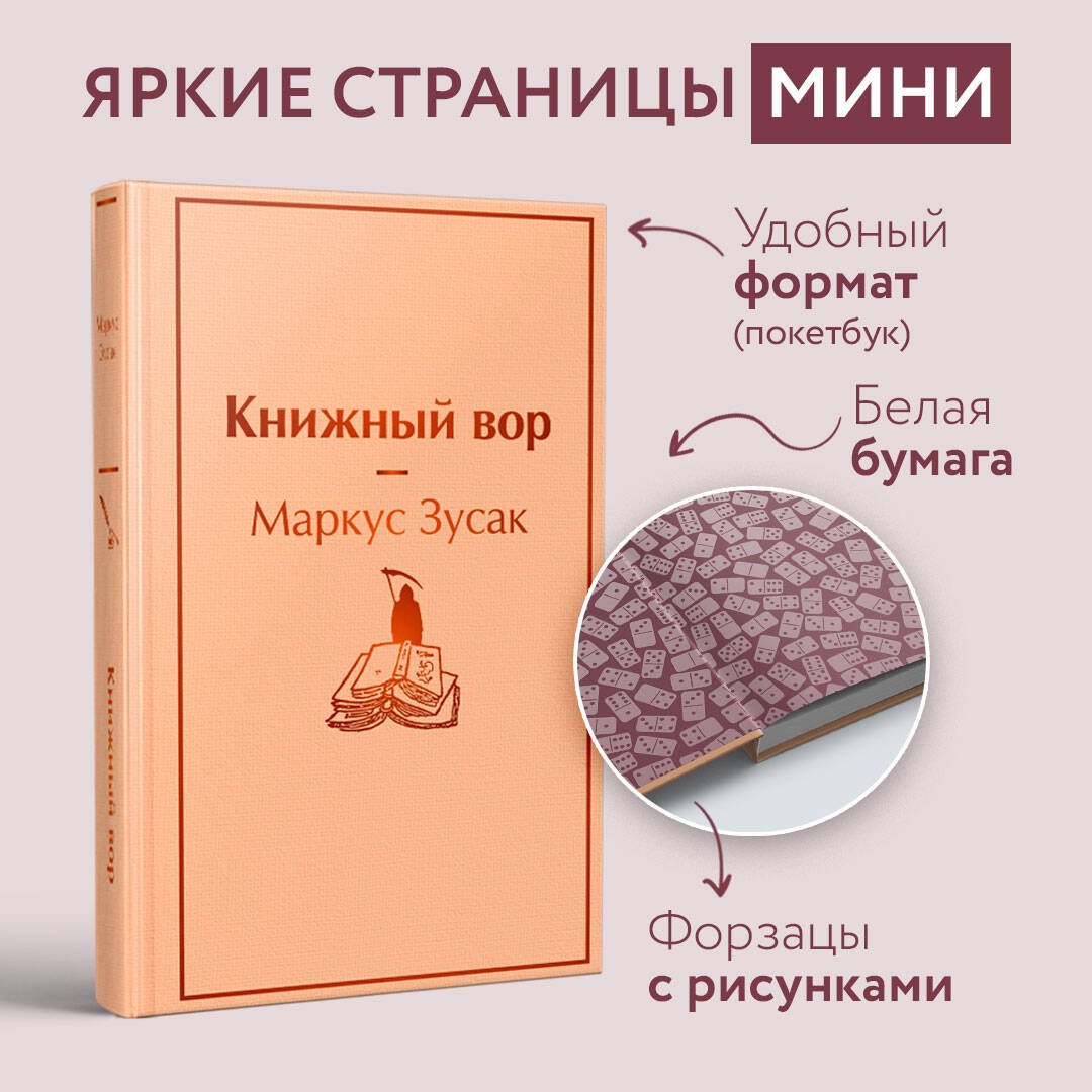 Январь 1939 года. Германия. Страна, затаившая дыхание. Никогда еще у смерти не было столько работы. А будет еще больше. Мать везет девятилетнюю Лизель Мемингер и ее младшего брата к приемным родителям под Мюнхен, потому что их отца больше нет - его унесло дыханием чужого и странного слова «коммунист», и в глазах матери девочка видит страх перед такой же судьбой. В дороге смерть навещает мальчика и впервые замечает Лизель. Так девочка оказывается на Химмель-штрассе - Небесной улице. Кто бы ни придумал это название, у него имелось здоровое чувство юмора. Не то чтобы там была сущая преисподняя. Нет. Но и никак не рай. «Книжный вор» - недлинная история, в которой, среди прочего, говорится: об одной девочке; о разных словах; об аккордеонисте; о разных фанатичных немцах; о еврейском драчуне; и о множестве краж. Это книга о силе слов и способности книг вскармливать душу. Экранизирован в 2013 году. «Книжный вор» стал издательской сенсацией. Его тираж только на английском языке превысил 1,5 миллиона экземпляров. «Этот роман можно не только читать - в нем стоит поселиться». - The Horn Book Magazine «Триумф писательской дисциплины… один из самых необычных и убедительных австралийских романов нового времени». - The Age «Блистательная причудливая сказка. Превосходная книга, которую вы будете рекомендовать всем, кого встретите». - Herald-Sun| Издательство | Эксмо |