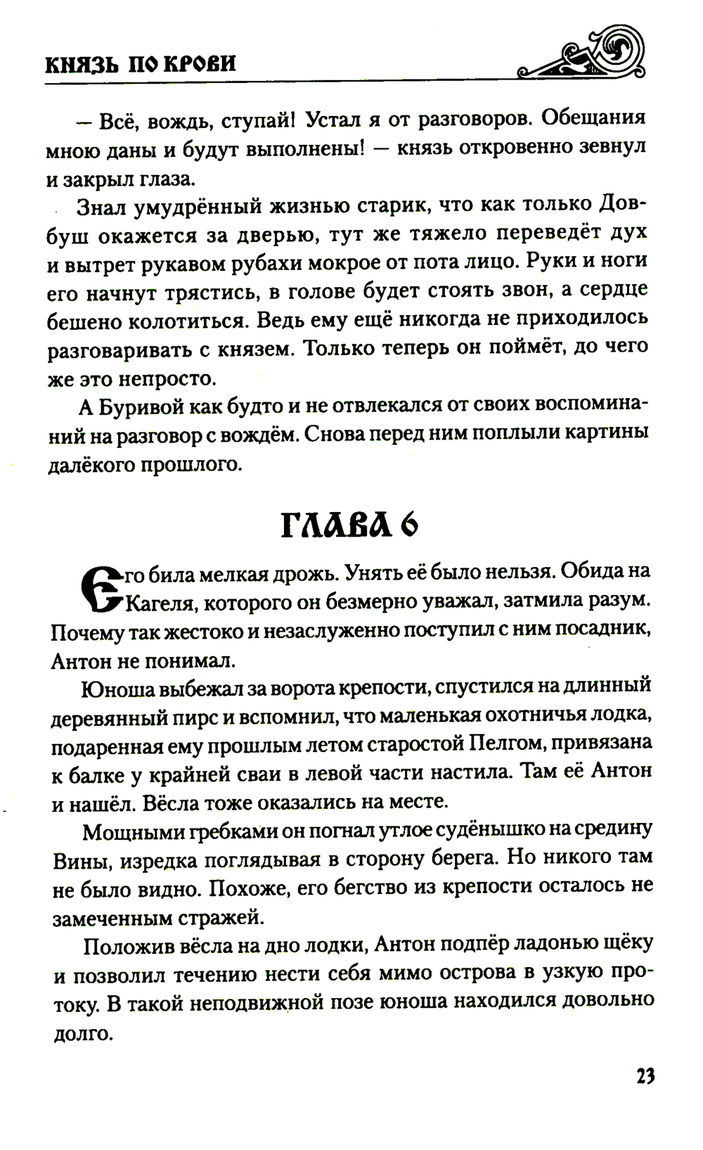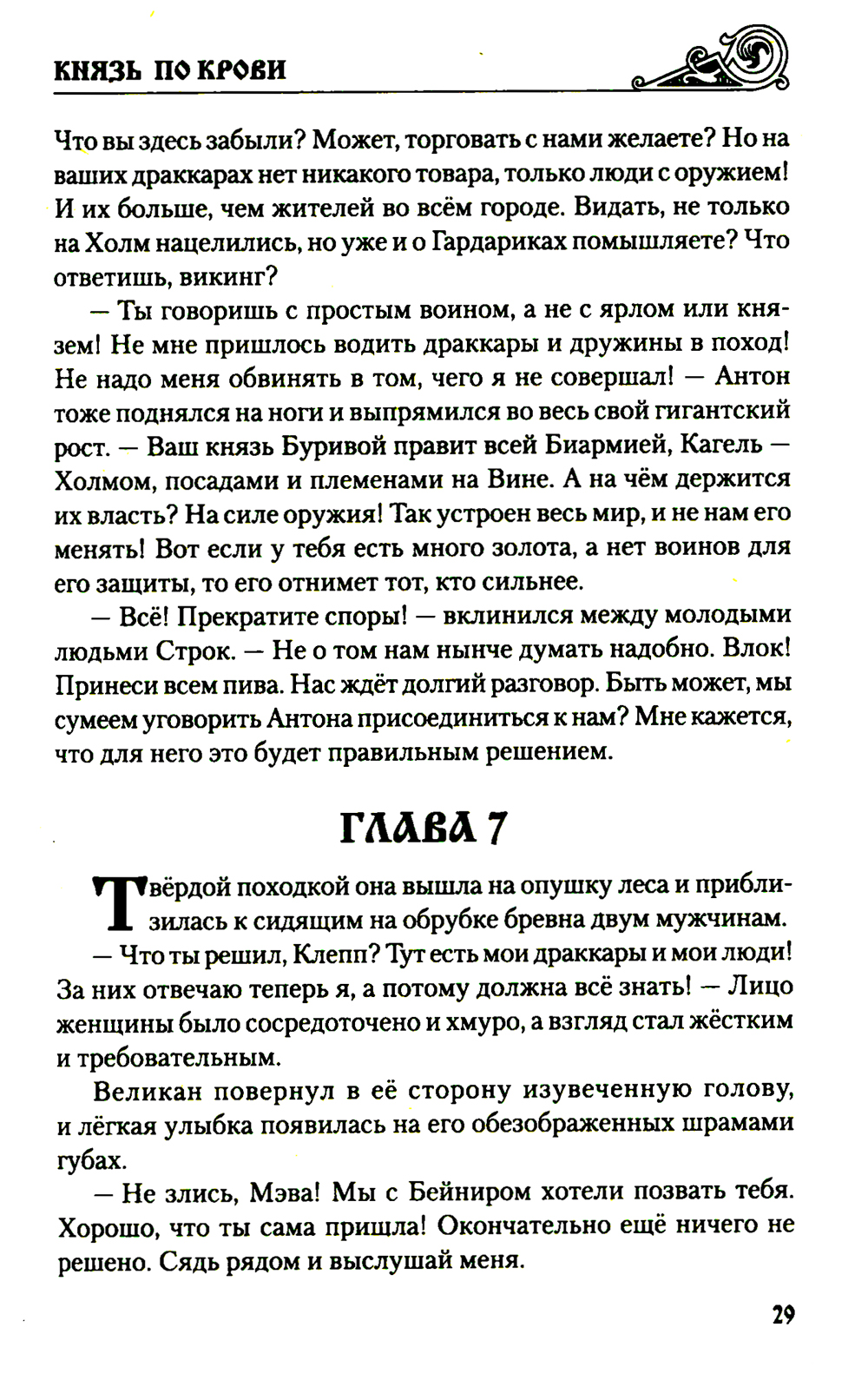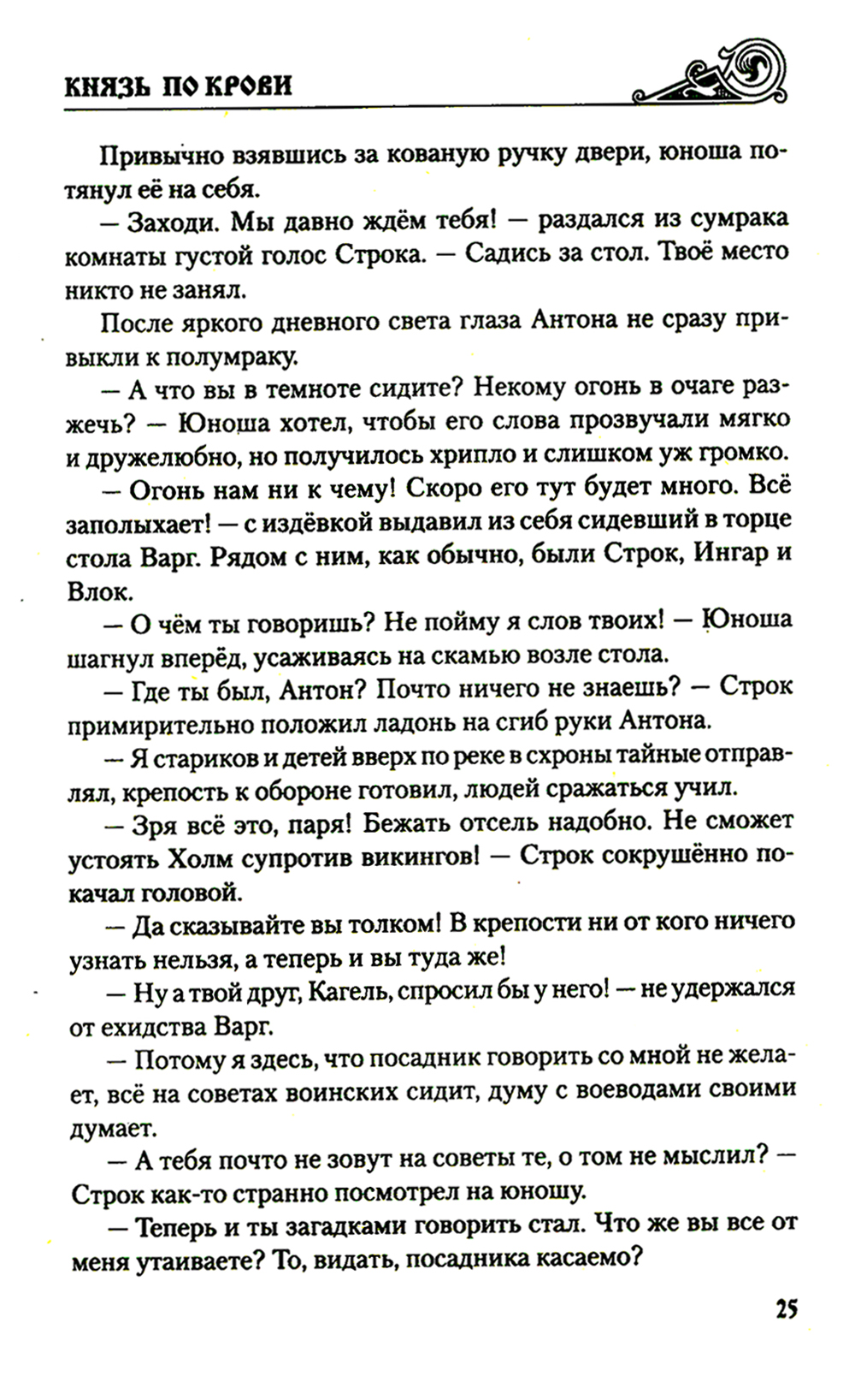 IX век. Между викингами и дружиной престарелого князя Буривоя возобновляется война за город Холм - отдалённый форпост древнего Новогорода. Буривой даже не догадывается, что викингов возглавляет его племянник, много лет назад пропавший в Варяжском море, а теперь носящий чужеземное имя Клепп. Князь терпит несколько поражений подряд, однако его сын - Гостомысл - во главе большой рати приходит на помощь отцу, окружает викингов на суше и начинает кровавую сечу. Остановить её может только смерть предводителей враждующих сторон, но захотят ли боги принять эту жертву и позволят ли наступить тишине и миру? «Князь по крови» - продолжение романов Арсения Втюрина «Первый среди равных» и «Путь воина», ранее опубликованных в серии «У истоков Руси» и входящих в цикл «Кто же ты, Рюрик?».