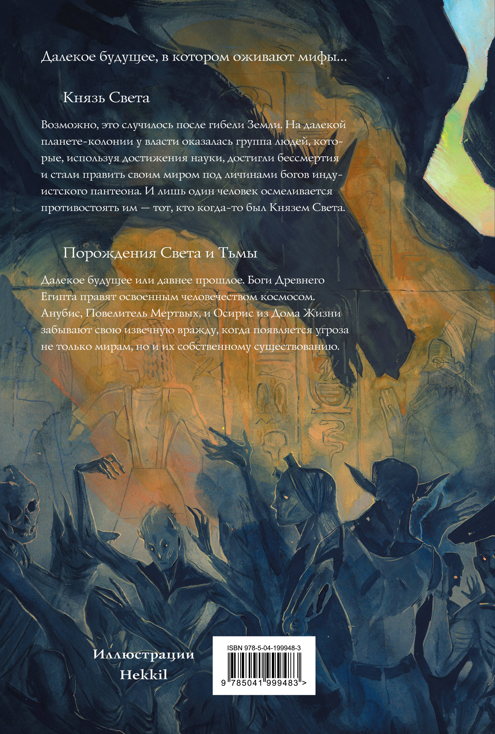 Премия «Хьюго». Номинации на премии «Небьюла», «Великое Кольцо», «Сталкер». Два знаменитых романа Роджера Желязны. Шедевры «новой волны» научной фантастики, полные поэзии и глубокого уважения к мифологии. Подарочное издание с дополнительными материалами полностью проиллюстрировано талантливой художницей Hekkil. «Князь Света» Мир, в котором власть безраздельно принадлежит бессмертным и всемогущим божествам индуистского пантеона: Шиве, Ганеше, Кали и другим. Все люди, от нищего рыбака и йога-отшельника до царственного махараджи, поклоняются, молятся и служат им. Но есть тот, кто готов подарить людям свободу. Сейчас он Просветленный, но когда-то, во времена войн с демонами, его звали Лорд Калкин, Князь Света или просто Сэм… «Порождения Света и Тьмы» Два бога, два Дома, один квест, и вечная борьба между жизнью и смертью. Но когда появляется угроза, которая может погубить все миры, Анубису, Повелителю Мертвых, и Осирису из Дома Жизни придется отбросить вражду, ведь иначе Вселенная может быть уничтожена. «Он пишет о науке так, как будто это магия, а о магии - так, как будто это наука». - New York Times Book Review «Он всегда был поэтом. Его слова пели. Он был рассказчиком, которому нет равных. Он создавал такие красочные, экзотические и запоминающиеся миры, каких еще не было в нашем жанре». - Джордж Р. Р. Мартин «Забавный, мудрый, пронизанный чувством удивительного и познавательного… Никто другой не делал мифы реальными и ценными так, как это удавалось Роджеру Желязны». - Нил Гейман «Читать Желязны - все равно что погрузиться в струнный квартет Моцарта в исполнении Телониуса Монка». - Грег Бир