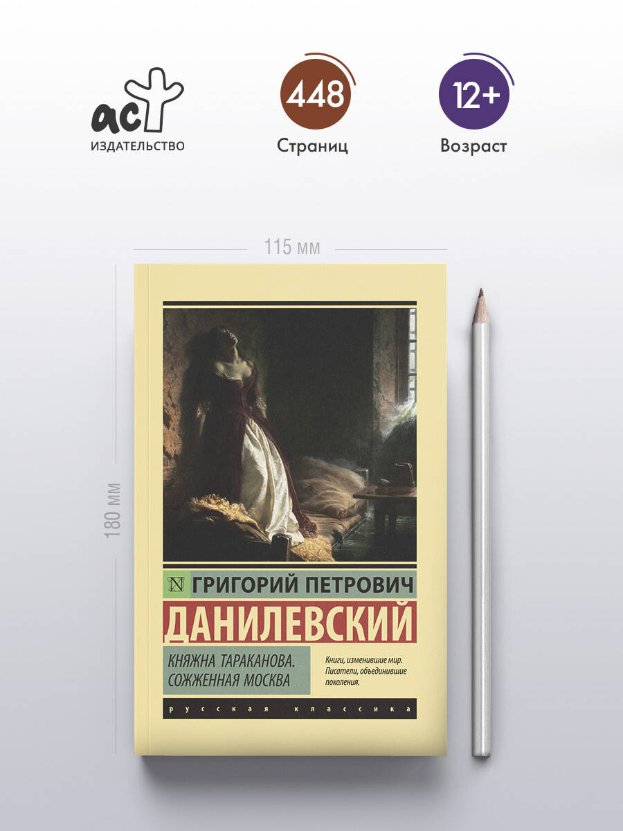 - Для всех поклонников исторических романов. - Сразу два произведения в одном томе. - «Княжна Тараканова» - трагическая история молодой аристократки, называвшей себя тайной дочерью императрицы Елизаветы Петровны. - «Сожженная Москва» - история о том, как простые москвичи превратили оставленный русскими войсками город в огненный ад для солдат Наполеона.| Издательство | Издательство "АСТ" |