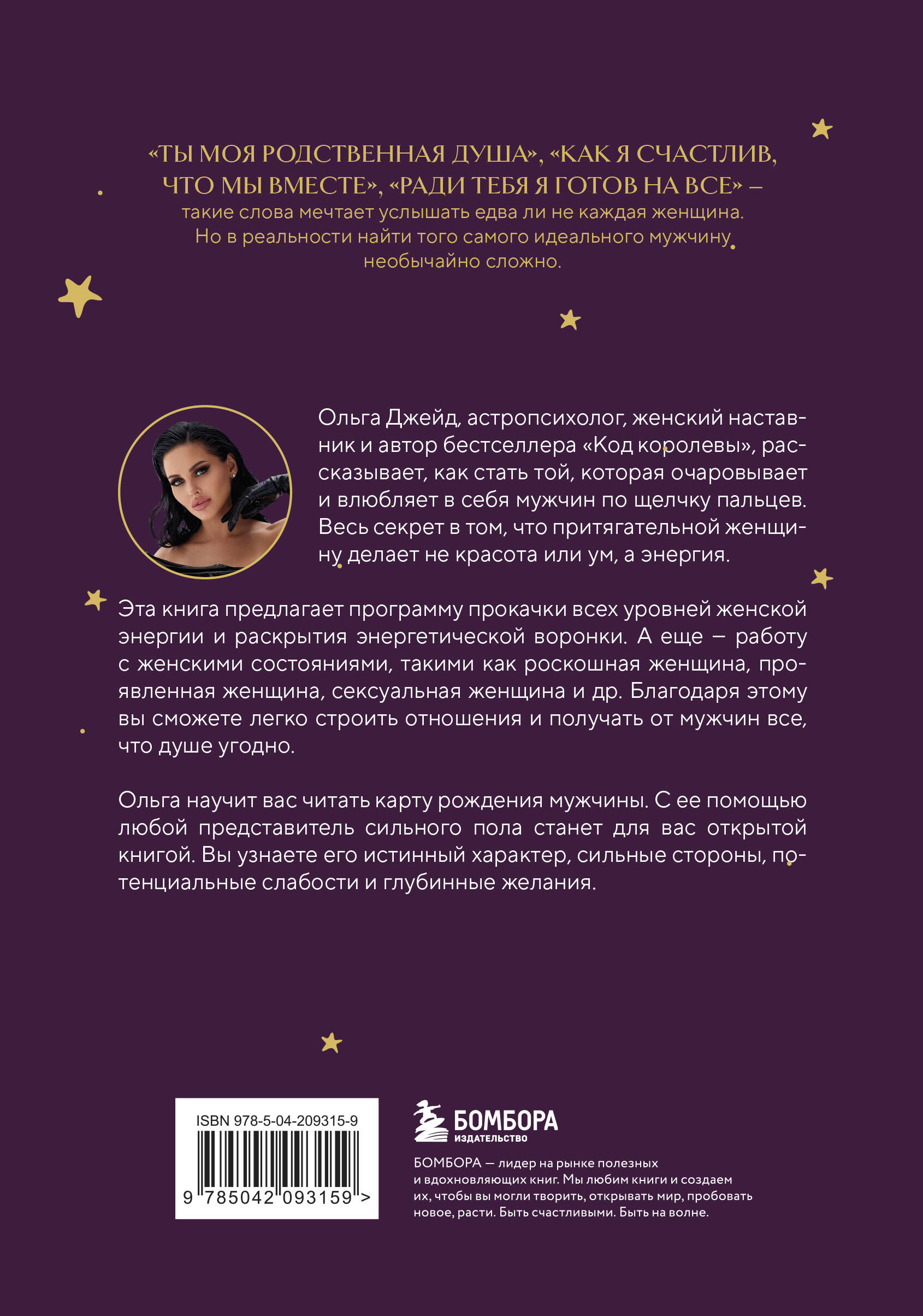 «Ты моя родственная душа», «Как я счастлив, что мы вместе», «Ради тебя я готов на все» - такие слова мечтает услышать едва ли не каждая женщина. Но в реальности найти того самого идеального мужчину необычайно сложно. Ольга Джейд, астропсихолог, женский наставник и автор бестселлера «Код королевы», рассказывает, как стать той, которая очаровывает и влюбляет в себя мужчин по щелчку пальцев. Весь секрет в том, что притягательной женщину делает не красота или ум, а энергия. Эта книга предлагает программу прокачки всех уровней женской энергии и раскрытия энергетической воронки. А еще - работу с женскими состояниями, такими как роскошная женщина, проявленная женщина, сексуальная женщина и др. Благодаря этому вы сможете легко строить отношения и получать от мужчин все, что душе угодно. А еще эта книга научит вас читать карту рождения мужчины. С ее помощью любой представитель сильного пола станет для вас открытой книгой. Вы узнаете его истинный характер, сильные стороны, потенциальные слабости и глубинные желания.| Издательство | ООО "Издательство "Эксмо" |