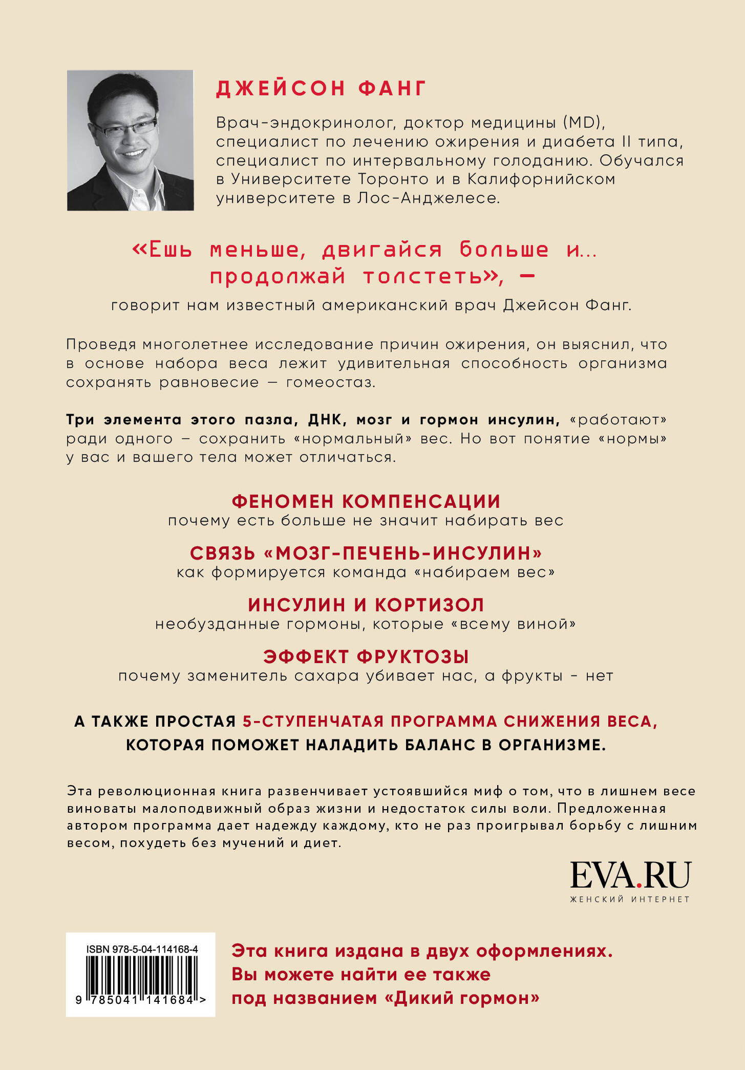 Почему люди толстеют? Привычная парадигма заключается в предположении, что мы много едим и мало двигаемся, отсюда и результат. А ну-ка попробуйте больше двигаться и меньше есть! Получилось похудеть? Конечно, нет. Особенно, когда речь идет об абдоминальном ожирении (жирок на животе и внутренних органах). Тут и на диету садятся, и голодают, а результат держится только в момент самоистязания. Доктор-нефролог, всемирно известный специалист по лечению ожирения и диабета доктор Фанг на основании 30-летних исследований доказывает нам, что причина лишнего веса кроется не в личной неспособности сдерживать себя. Главный виновник лишнего веса - гормон инсулин. Именно его деятельность дает мозгу неправильно заданное значение веса. Проще говоря, мозг считает нормой завышенный вес тела, а потому оберегает его от любых посягательств со стороны. Потому и диеты не работают в долгосрочной перспективе! Данная книга продается также в другом оформление под названием «Дикий гормон». - Как же убедить мозг снизить заданное значение веса? - Как договориться со своей гормоналкой? - И почему так опасна фруктоза? Революционная книга, многолетний бестселлер во всем мире, дает ответы на эти и другие вопросы. Но главное - она помогает снизить свой вес до реальной нормы и убедить мозг дать команду организму похудеть.| Издательство | Форс Украина ООО |