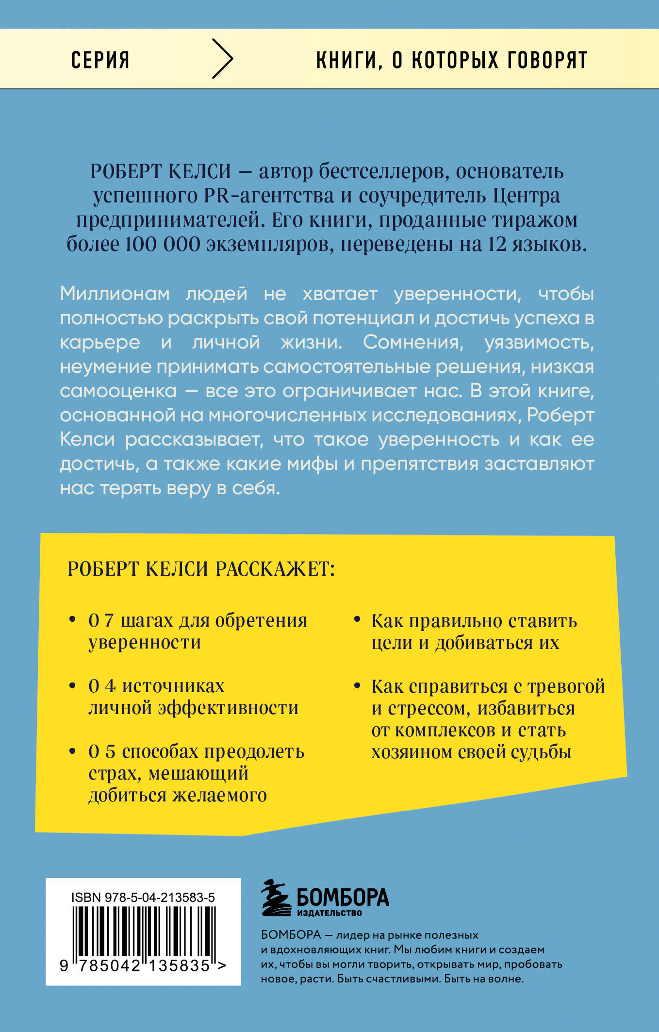 В книге: - 4 источника личной эффективности. - 5 способов преодолеть страх, мешающий добиться желаемого. - 7 шагов для обретения уверенности. Отзывы: «Наконец-то: книга о том, как обрести уверенность, написана человеком, который сам боролся с неуверенностью. Личный опыт Роберта Келси помог ему добраться до сути основных правил, позволяющих обрести уверенность в себе». - Роман Крознарик, автор книги How to Find Fulfilling Work и соучредитель «Школы жизни» «Это вам не банальное "средство от всех болезней", способное помочь лишь тому, кто его продает, - с помощью Келси вы действительно добьетесь значительных перемен». - Оливер Джеймс, автор книги They F*** You Up! «Замечательная книга! Она так сильно добавляет уверенности, что даже не хотел после нее писать отзыв. Началась мания величия=))) Эта книга поднимает уровень уверенности в два раза. Так что будьте осторожны». - Ицхак Пинтосевич, автора бестселлера «Действуй! 10 заповедей успеха»| Издательство | ООО "Издательство "Эксмо" |