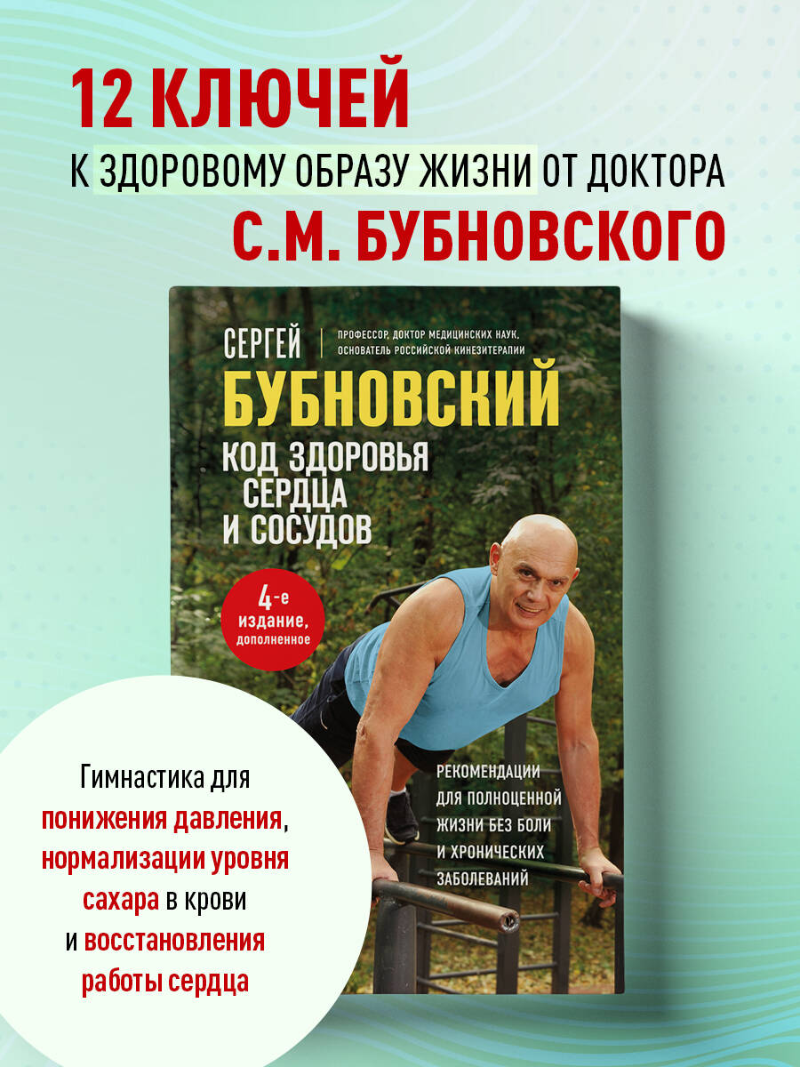 Как уберечь здоровье? Доктор Бубновский расскажет о секретах здорового образа жизни. Среднестатистический человек - ленив, труслив и слаб. Что такое здоровье? И как его вернуть? Об этом человек начинает задумываться и осознавать только тогда, когда потерял здоровье, порой окончательно. Уже после 40 лет человек, относящийся беспечно к правильному образу жизни, имеет в наличии и заболевания позвоночника (остеохондроз), и сосудистые (гипертония). После 50 - уже букет болезней: ИБС, сахарный диабет, запоры, опущение органов, бессонница и прочее. После 60 - что-то еще осталось целым и... очень хочется жить! После 70 - как-то надо дожить не под себя и не в слабоумии. Эта книга показывает пути к здоровью или восстановлению здорового образа жизни, дает ключи к коду личного здоровья. За 30 лет практики доктор Бубновский на личном опыте убедился, что силовые упражнения способны излечить всевозможные болезни не хуже лекарств, и при этом никаких побочных явлений. При таком «лечении» нормализуется уровень сахара в крови, проходят головные боли, возвращается радость жизни… Здоровье - пусть к счастью! Будьте здоровы!| Издательство | ООО "Издательство "Эксмо" |