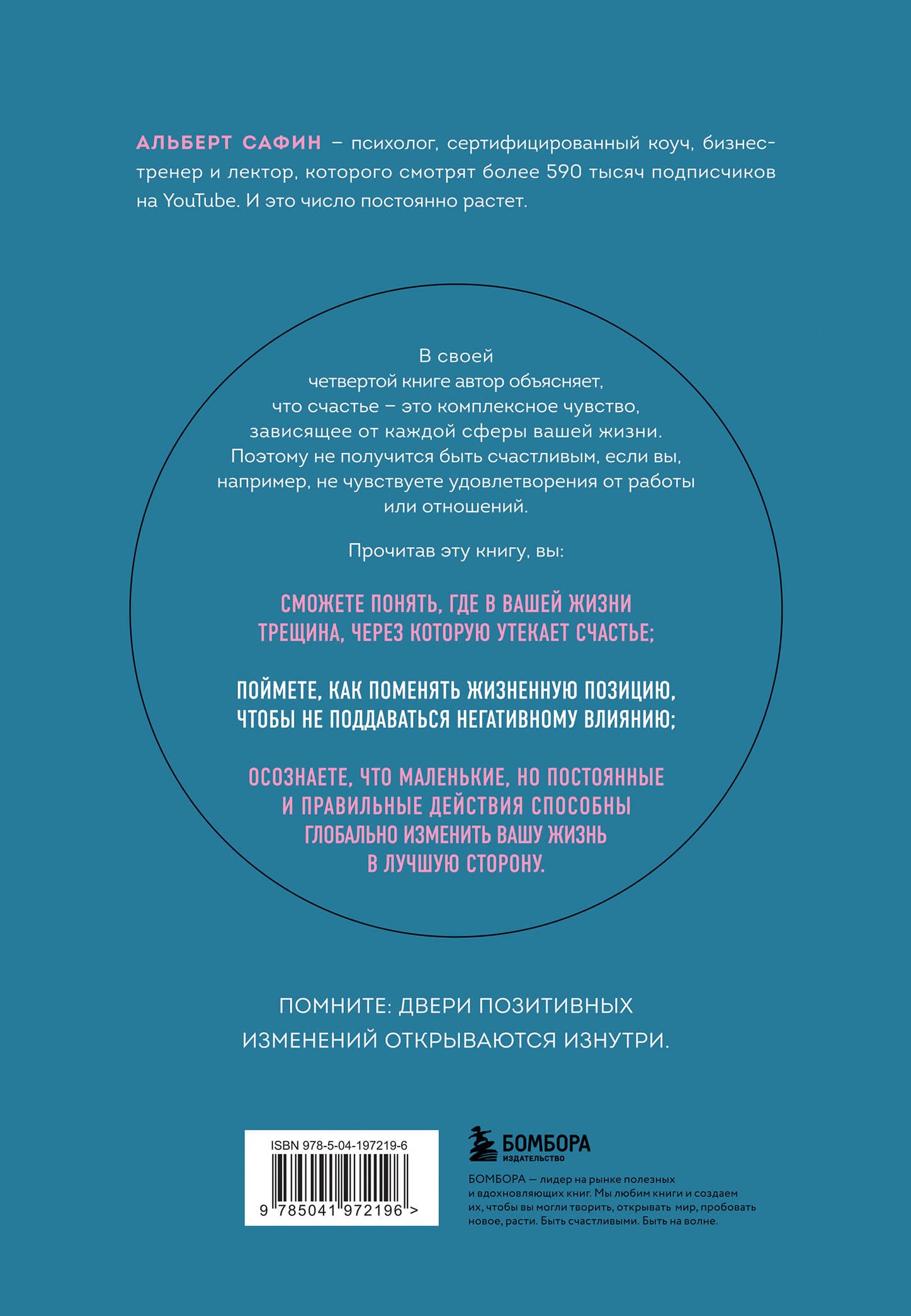 Альберт Сафин - психолог, сертифицированный коуч, бизнес-тренер и лектор, которого смотрят более 590 тысяч подписчиков на YouTube. И это число постоянно растет. В своей четвертой книге он объясняет, что счастье - это комплексное чувство, зависящее от каждой сферы вашей жизни. Поэтому не получится быть счастливым, если вы, например, не чувствуете удовлетворения от работы или отношений. Прочитав эту книгу, вы: - сможете понять, где в вашей жизни трещина, через которую утекает счастье; - поймете, как поменять жизненную позицию, чтобы не поддаваться негативному влиянию; - осознаете, что маленькие, но постоянные и правильные действия способны глобально изменить вашу жизнь в лучшую сторону. Помните: двери позитивных изменений открываются изнутри.| Издательство | ООО "Издательство "Эксмо" |