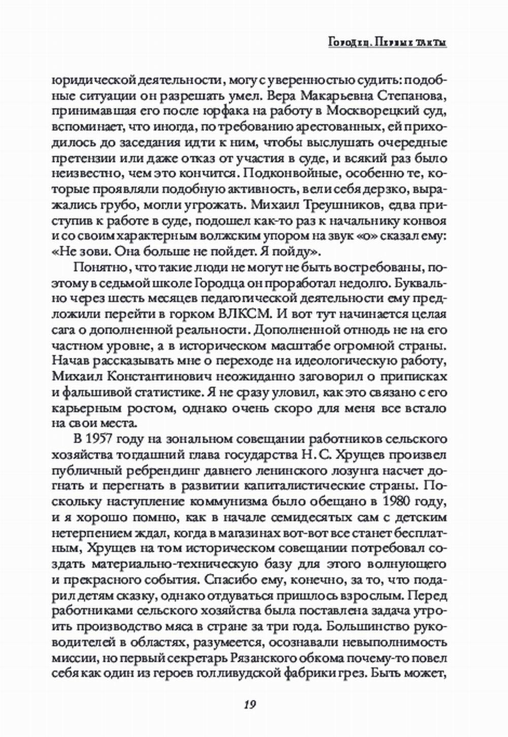 Книга «Кодекс гражданина Треушникова» отражает жизненный путь одного из самых выдающихся юристов современности. Начавшись в тихом старинном Городце на берегу Волги, путь этот привел Михаила Константиновича к вершинам академического сообщества сначала на всесоюзном, а после распада СССР - и на всероссийском уровне. Неповторимые волжские характеры, окружавшие героя в раннем детстве, политические авантюры хрущевской эпохи, полуголодное и бесконечно счастливое московское студенчество шестидесятых годов, поездки на целину, забавные и полные драматизма казусы из судебной практики, работа на юрфаке МГУ, рассказы из первых уст о том, как непросто создавался свод процессуальных норм для гражданского судопроизводства в современной России, - вот что найдет читатель в этой книге. Биография здесь соотнесена с эпохой, а эпоха - с судьбой. Мощное послевоенное поколение уходит в историю, но мы успели зафиксировать их голоса.| Издательство | Городец |