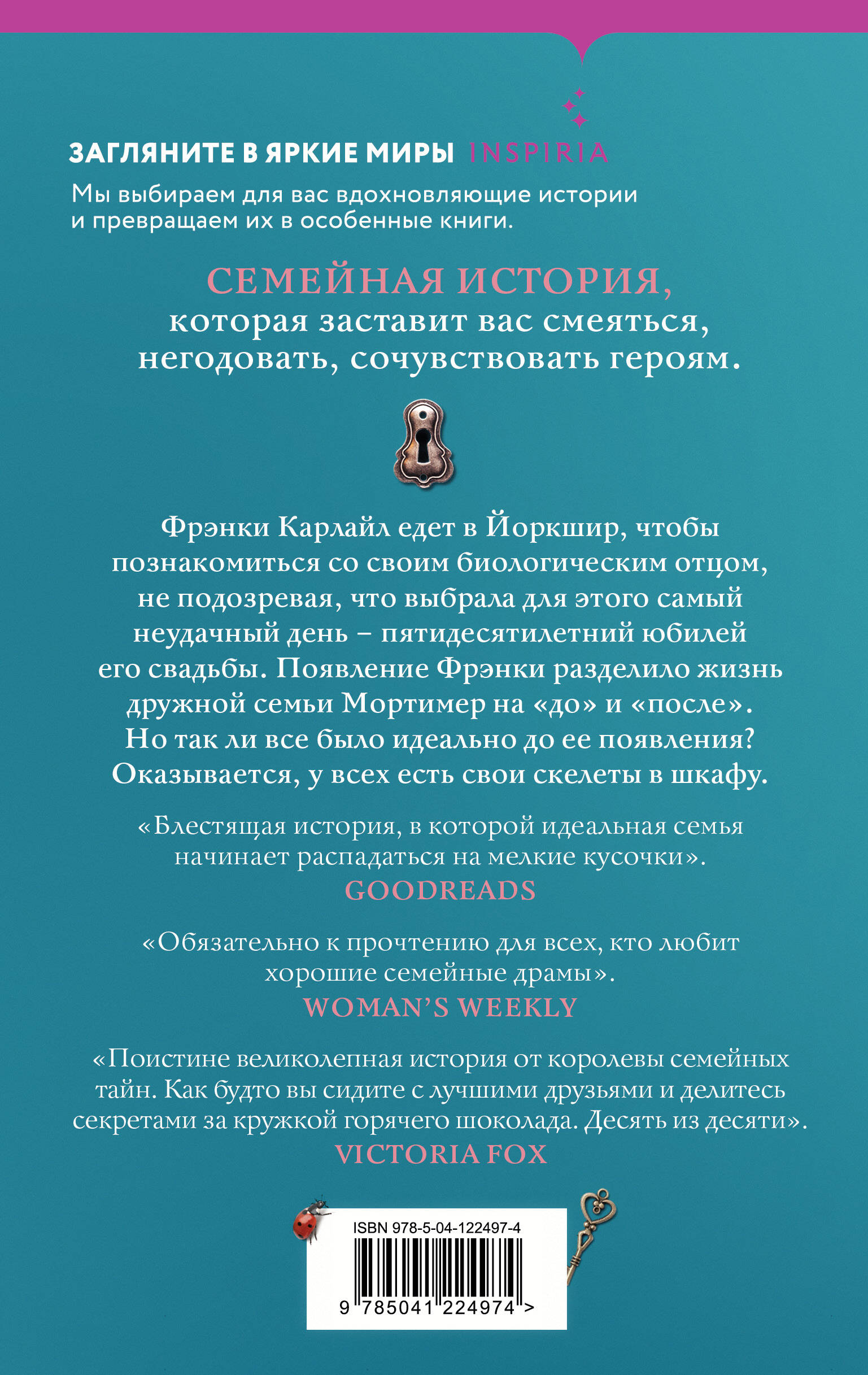 Люси Даймонд - автор бестселлеров Sunday Times. «Кое-что по секрету» - история о семейных тайнах, скандалах, любви и преданности. Секреты вскрываются один за другим, поэтому семье Мортимер придется принять ряд непростых решений. Это лето навсегда изменит их жизнь. Фрэнки Карлайл едет в Йоркшир, чтобы познакомиться со своим биологическим отцом. Девушка и не подозревала, что выбрала для этого самый неудачный день - пятидесятилетний юбилей его свадьбы. Появление Фрэнки разделило жизнь дружной семьи Мортимер на «до» и «после» Но так ли все было идеально до ее появления? Оказывается, у всех есть свои скелеты в шкафу. «Блестящая история, в которой идеальная семья начинает распадаться на мелкие кусочки». - Goodreads «Поистине великолепная история от королевы семейных тайн. Как будто вы сидите со своими лучшими друзьями и делитесь секретами за кружкой горячего шоколада. Десять из десяти». - Victoria Fox «Обязательно к прочтению для всех, кто любит хорошие семейные драмы». - Woman's Weekly| Издательство | ООО "Издательство "Эксмо" |