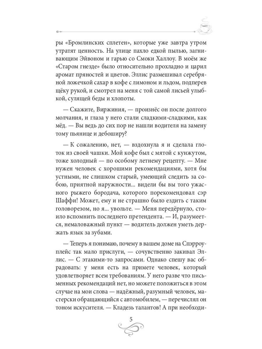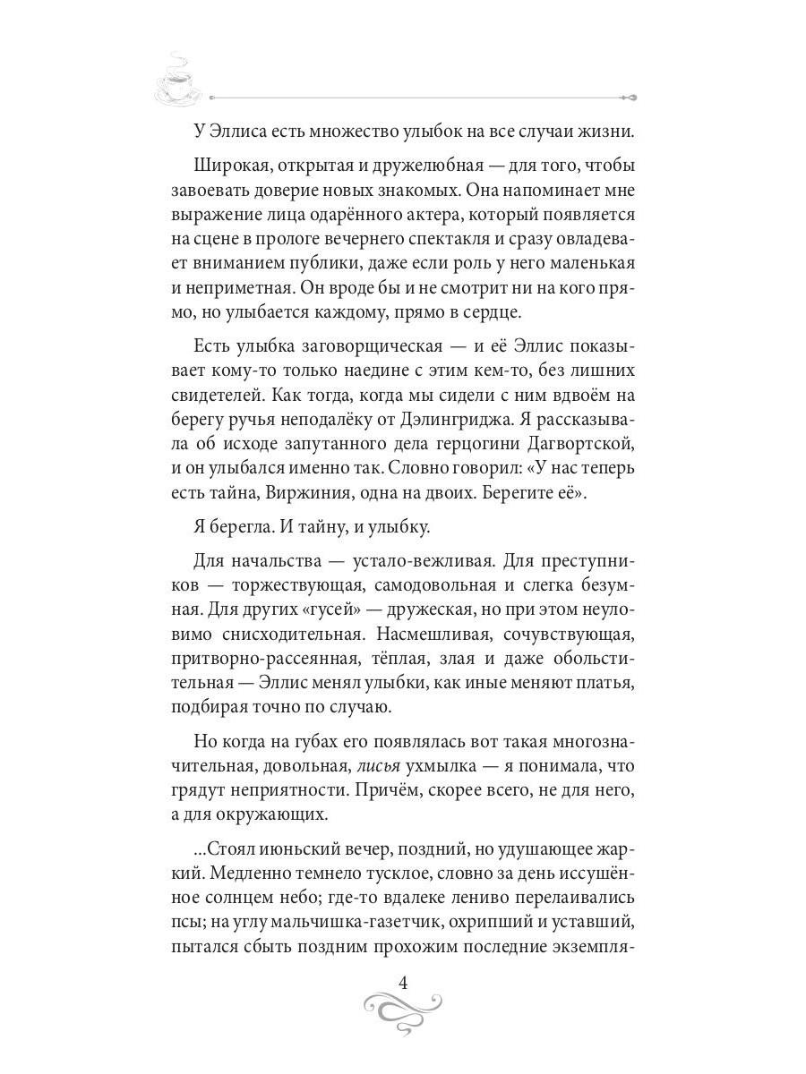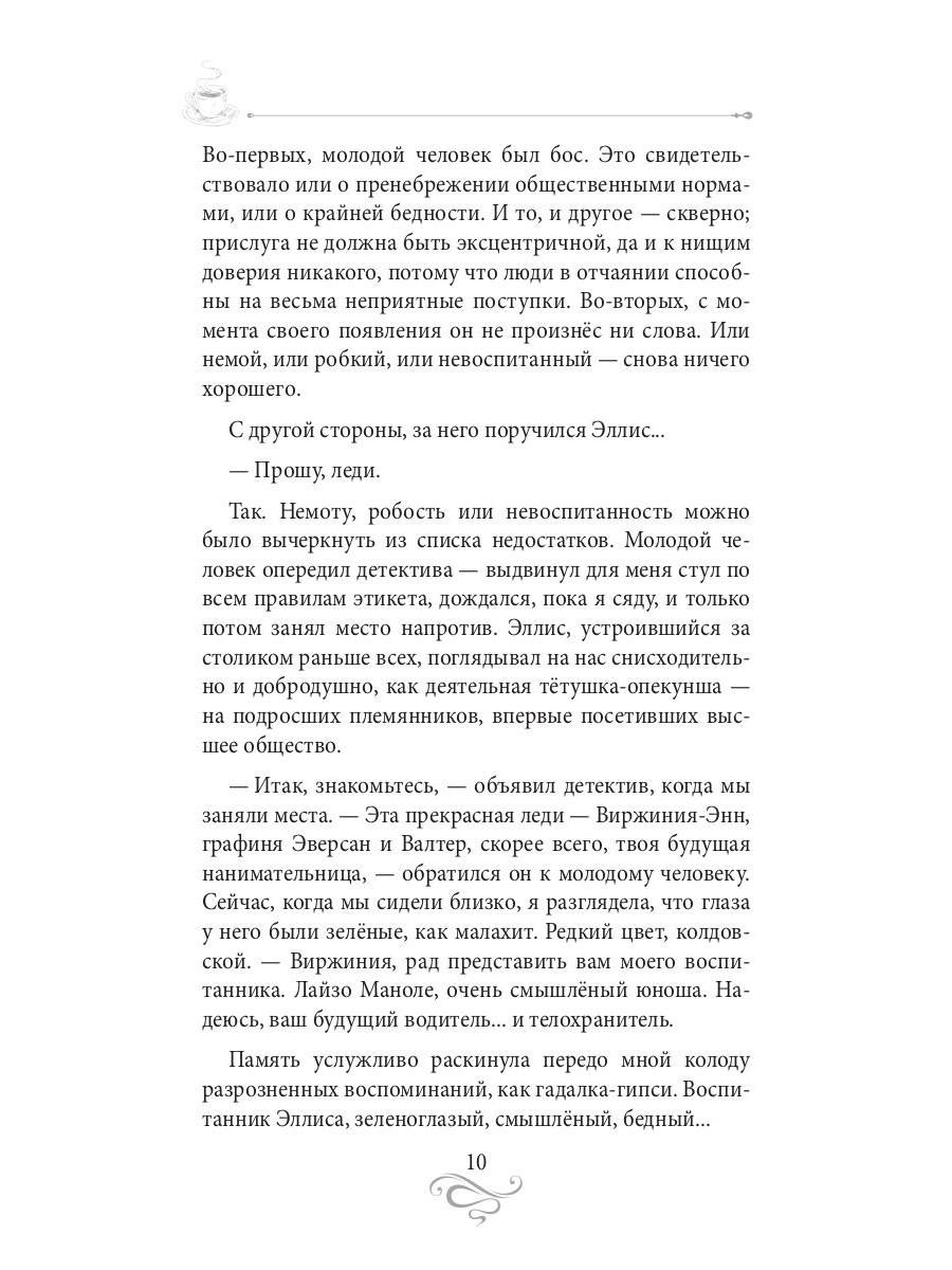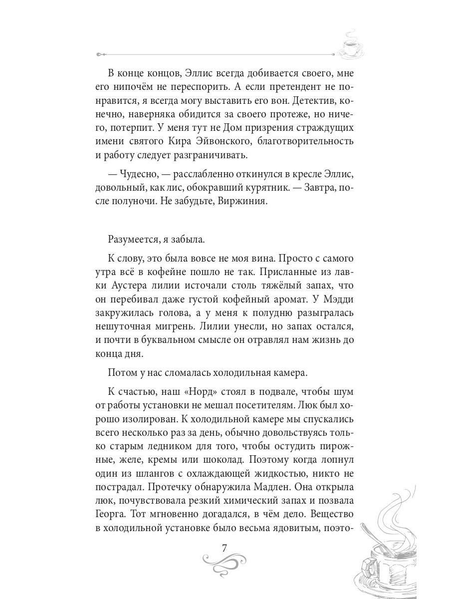 В кофейню леди Виржнии-Энн приходят не только за ароматным кофе, но и за ответами на загадки. Ведь только здесь можно застать неуловимого Эллиса Норманна, лучшего и, несомненно, самого эксцентричного детектива в столице. Однажды к Виржинии обращается один из добрых её друзей - талантливый художник, лучший друг которого недавно повесился. Управление спокойствия считает, что произошло самоубийство. Но так ли это? Детектив Эллис соглашается взяться за дело, но ставит условие: Виржиния должна взять на работу его приятеля-гипси. Беда в том, что это самый приятель - колдун, бессовестный авантюрист... А ещё он на редкость красив, и, кажется, его весьма заинтересовала юная графиня.| Издательство | Т8 RUGRAM |