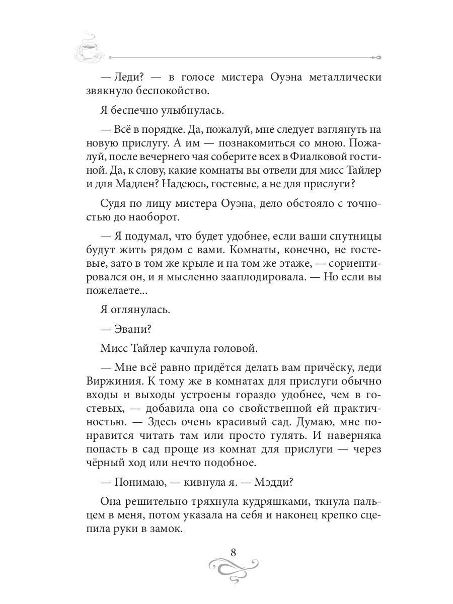 Леди Виржиния отправляется в загородный дом - отдохнуть от приключений, расследований... и успокоить сердце. Только вот получится ли? Ведь невыносимый колдун-гипси отправляется вместе с ней... А в деревне около поместья происходят загадочные убийства, и молва винит то чужака-лиходея, то остановившийся неподалёку табор, то обедневшего аристократа с жестокими увлечениями. Леди Виржиния не может остаться в стороне от беды и зовёт на помощь друга, детектива Эллиса. Вот только она сама ещё не знает, что - или кого - ей предстоит потерять в этом сражении со злом...| Издательство | Т8 RUGRAM |