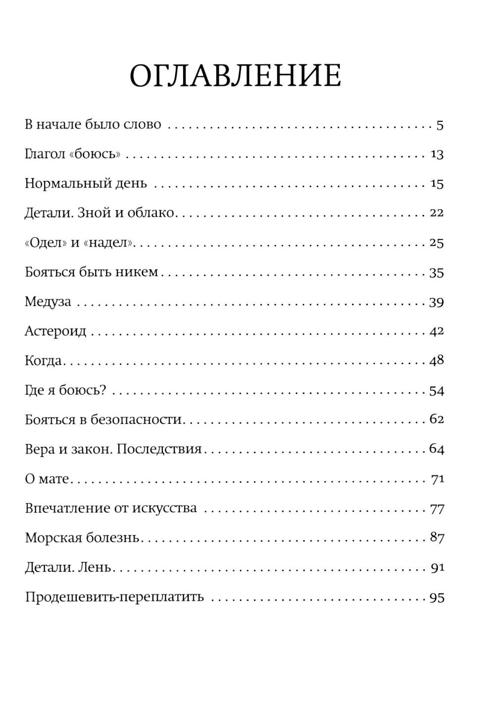 Страх практически во всех культурах ощущается как нечто постыдное, то, что нужно постоянно преодолевать. Очень хочется, чтобы человек, читая эту книгу, разрешил себе бояться. Чтобы ему не нужно было стыдиться своих страхов: за семью, за работу, бояться опоздать или выглядеть нелепо, бояться одиночества, бояться стихии или бояться неверно поставить ударение. Это очень смешной текст не о страхе, а о том времени, в котором мы живем.| Издательство | Фантом Пресс |