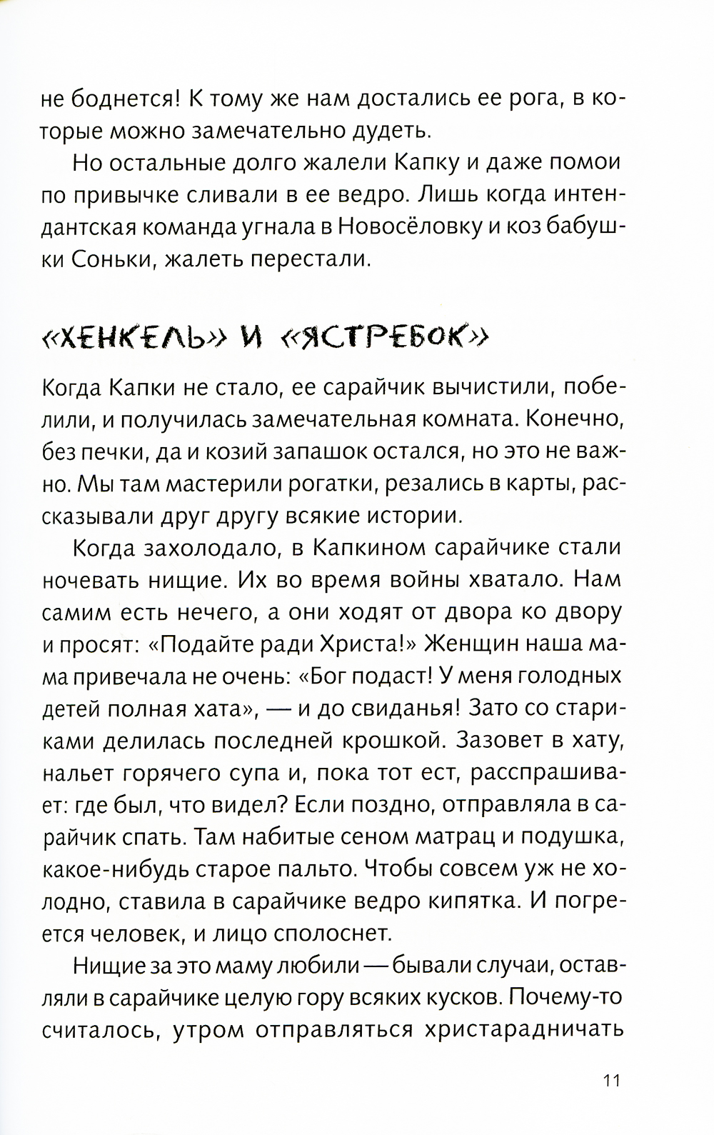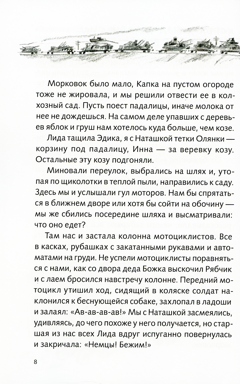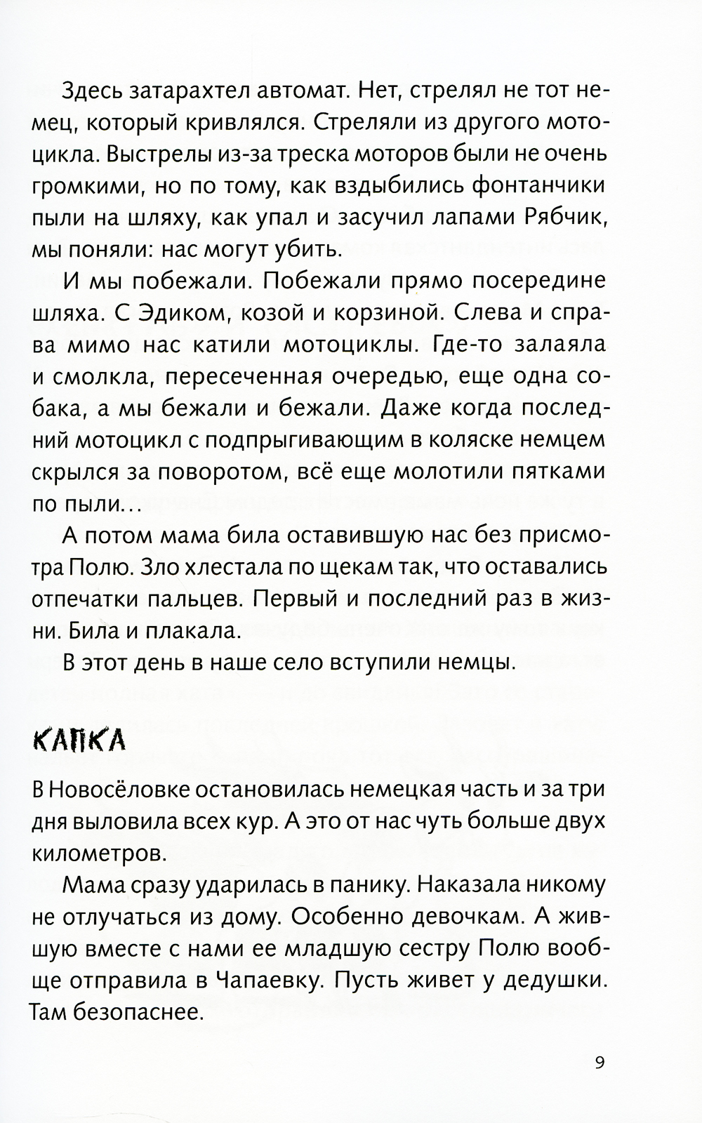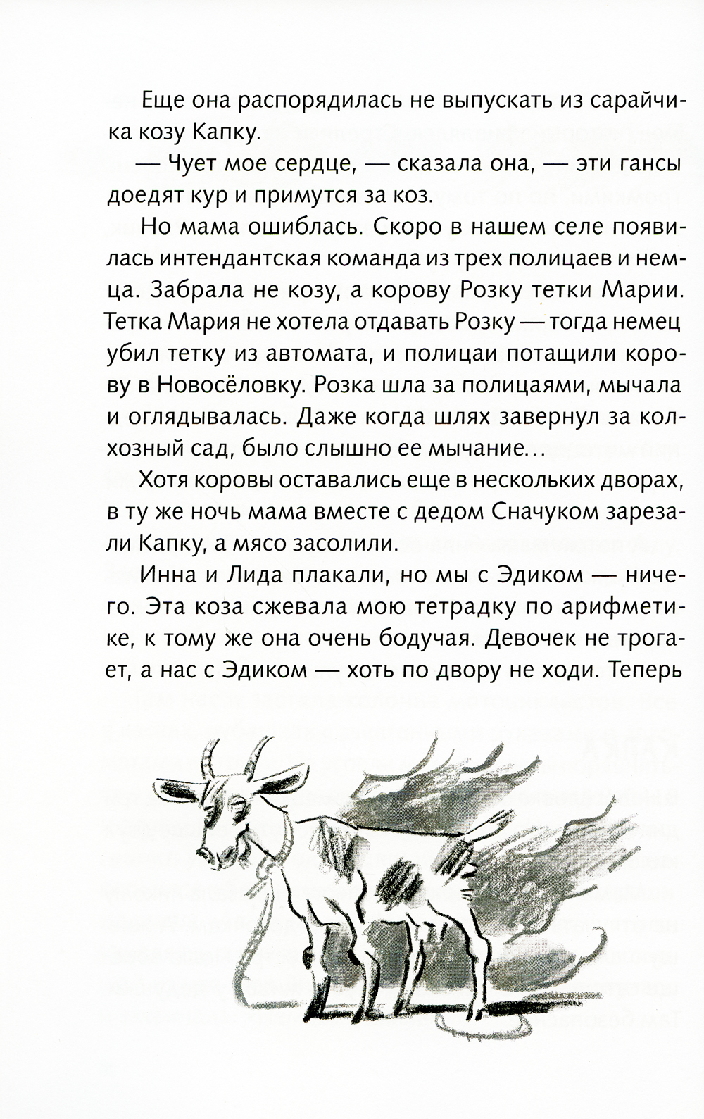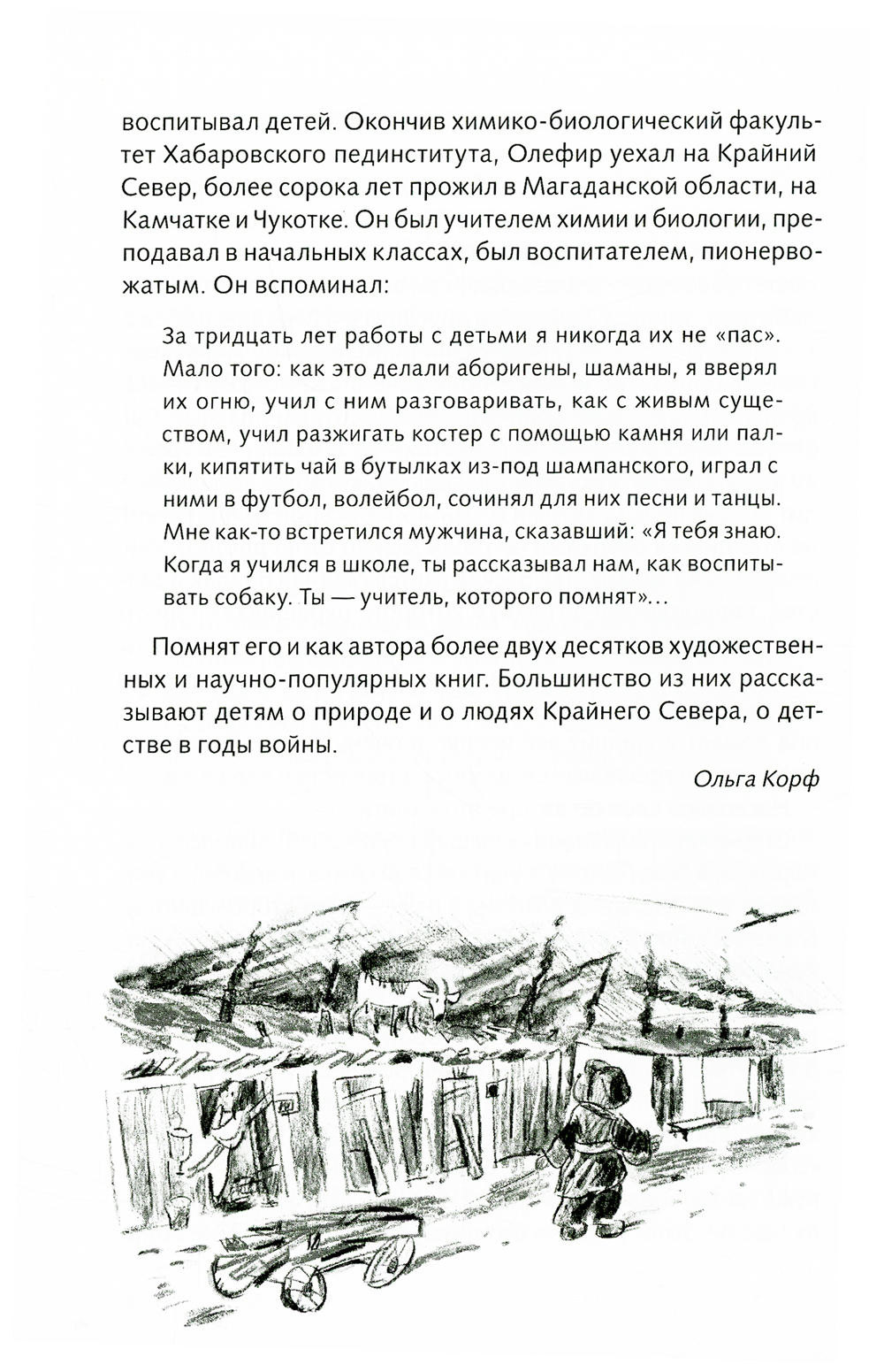 Станислав Олефир - из того поколения, которое играло не в «войнушку» - только в «войну»: не могло легкомысленно относиться к этому слову. Победу они праздновать не умели - как можно радоваться дню, унесшему жизнь отца, крестного, деда, дяди? Но при всей их серьезности «младшие дети войны» сохранили о страшных годах не одни лишь пугающие воспоминания: остались в их памяти и эпизоды поразительно светлые, иногда даже смешные. В коллекции зарисовок под общим названием «Когда я был маленьким, у нас была война...» как будто сплелись воедино все приметы эпохи. Коллективизация и немецкое наступление, освобождение села и послевоенный голод, «враги народа» и пленные - всё это в книге есть, и всего этого здесь нет. Об определяющих исторических событиях Станислав Олефир рассказывает в кратких очерках с помощью историй простых людей, избегая громких слов и обобщений. А поскольку жизнь в селе, где происходит действие, немыслима без животных, они становятся героями чуть ли не половины рассказов: друзья-собаки, безголосые куры и славный поросенок Шерстюк, ловко обегающий мины в поисках картошки, оказываются не менее интересны, чем люди. Жизнь оккупированного немцами украинского села показана глазами мальчишки 4-7 лет, для которого одинаково значимы любые события. Неожиданно подаренный немецким солдатом коробок спичек или пробивающая копытами дырки в крыше землянки коза - образы, в равной мере трогающие детскую душу. Война обнажает всё самое важное и скрывает сиюминутное, наносное, - проза Станислава Олефира дает это прочувствовать в полной мере. Станислав Михайлович родился в Запорожье в 1938-м, более 40 лет прожил в Магаданской области, на Чукотке и Камчатке, умер под Санкт-Петербургом в 2015-м. По профессии он был агрономом и педагогом-химиком, а по призванию- охотником и путешественником, поэтому большинство его книг - о тайге, Крайнем Севере, диких животных, с ними он был знаком не понаслышке. Сборник, который вы держите в руках, в этом смысле уникален: действие происходит совсем в других местах, в другие времена, и в центре внимания здесь прежде всего люди. Издание дополнено иллюстрациями Алексея Капнинского (Капыча) - легкими, стилистически выверенными, нарочито детскими: кажется, будто создал их сам главный герой.| Издательство | ИД КомпасГид |