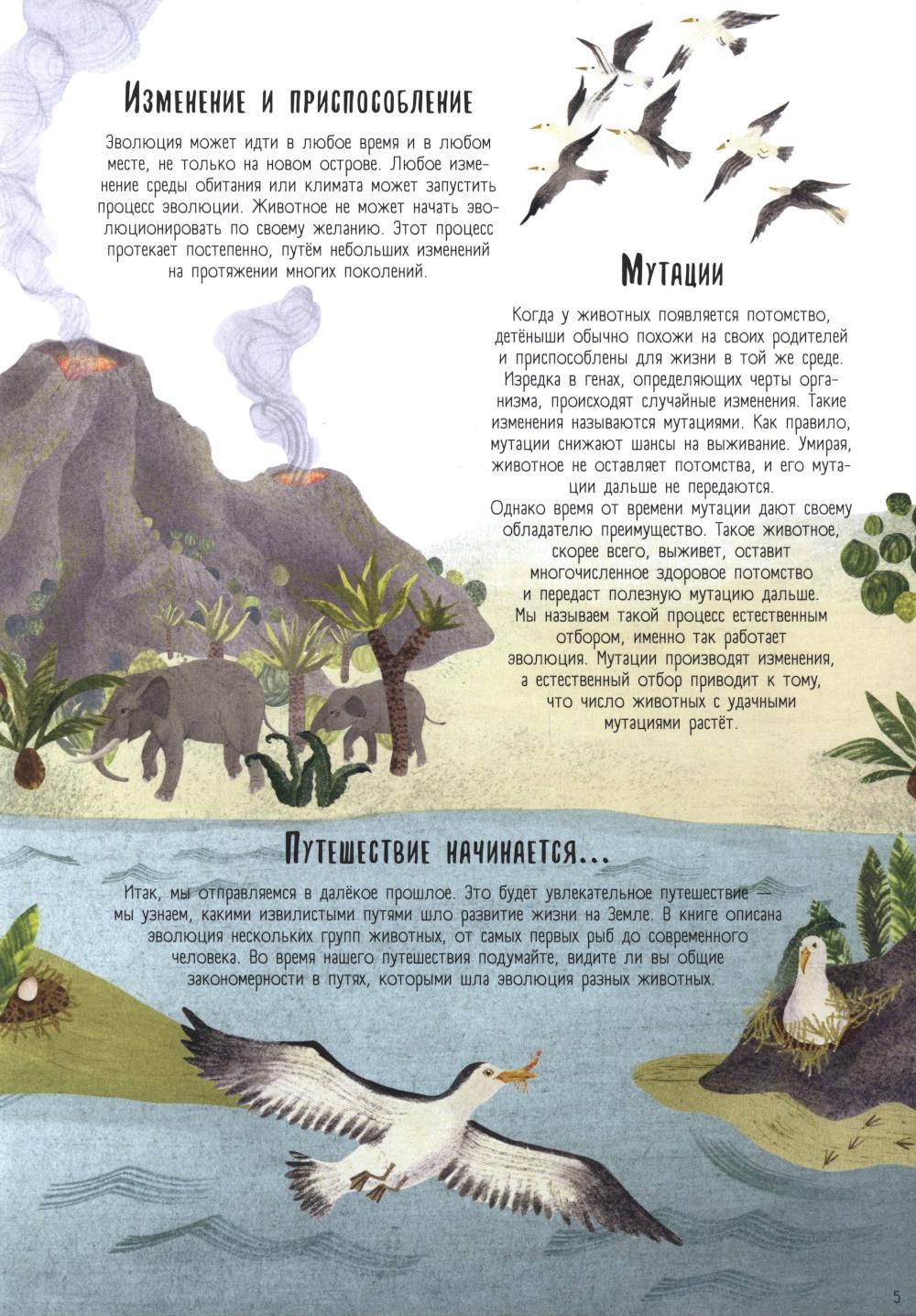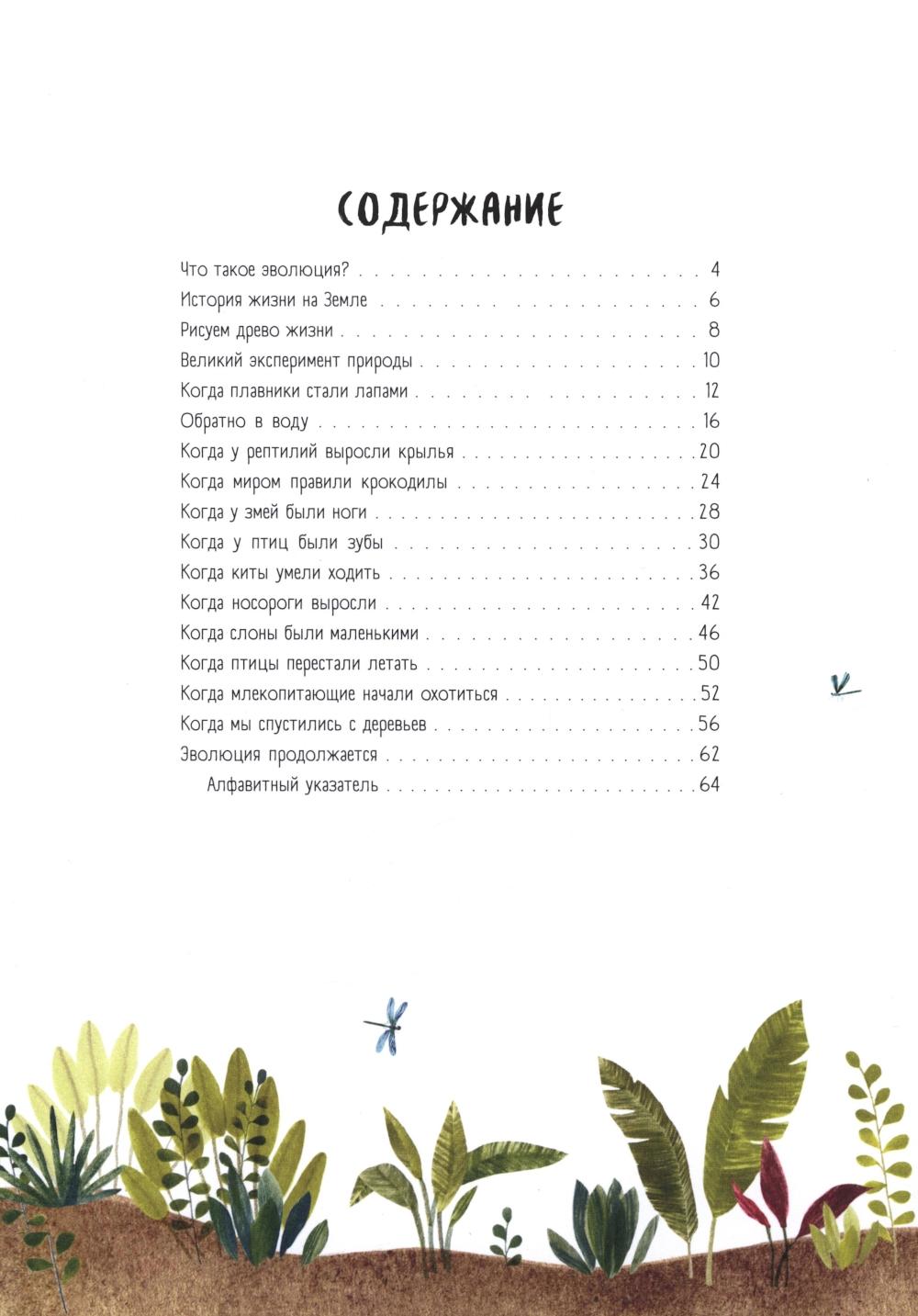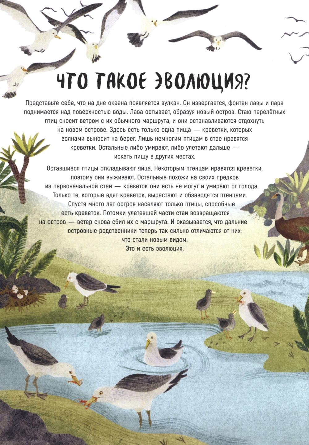 Невероятная, подробная и наглядная история эволюции для детей! Эта книга приглашает проследить извилистый путь, которым шло развитие жизни на Земле от первых рыб до современного человека. На этом пути читатель встретит гигантских птиц и крошечных слонов, увидит, как рыбы выходят на сушу, у динозавров растут крылья, у змей пропадают ноги, киты побеждают акулу, а наши далёкие предки слезают с деревьев. Удивительные существа, которые когда-то населяли Землю, описаны и нарисованы в этой книге в полном соответствии с последними научными данными и так, что чтение превращается в увлекательнейшее путешествие в далёкое прошлое.