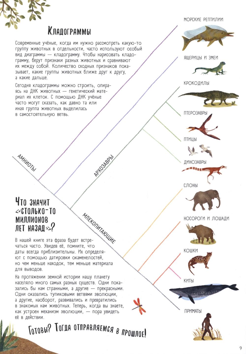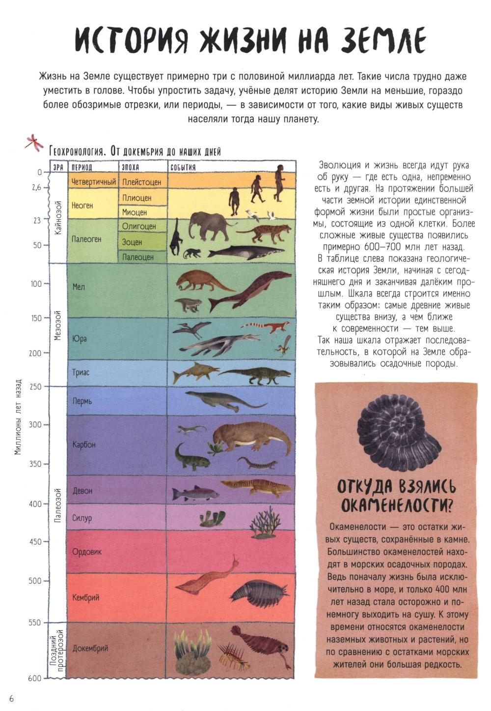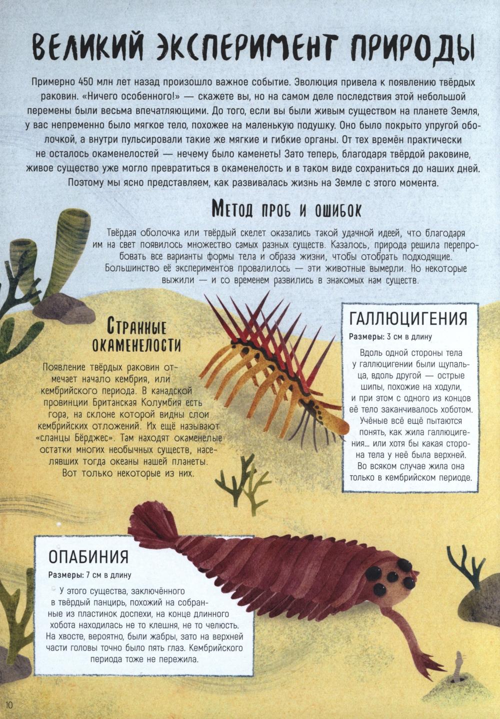 Невероятная, подробная и наглядная история эволюции для детей! Эта книга приглашает проследить извилистый путь, которым шло развитие жизни на Земле от первых рыб до современного человека. На этом пути читатель встретит гигантских птиц и крошечных слонов, увидит, как рыбы выходят на сушу, у динозавров растут крылья, у змей пропадают ноги, киты побеждают акулу, а наши далёкие предки слезают с деревьев. Удивительные существа, которые когда-то населяли Землю, описаны и нарисованы в этой книге в полном соответствии с последними научными данными и так, что чтение превращается в увлекательнейшее путешествие в далёкое прошлое.
