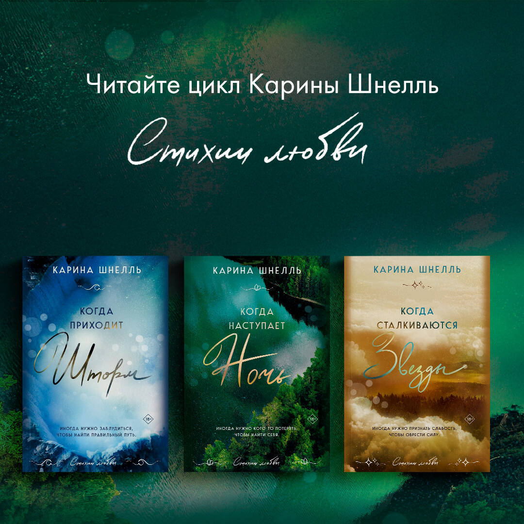 Долгожданный немецкий цикл Карины Шнелль «Стихии любви» состоит из трех книг: «Когда приходит шторм», «Когда наступает ночь», «Когда сталкиваются звезды». Эти истории любви на фоне невероятной природы не только увлекательны, но и полезны, потому что многие читатели увидят в главных героях себя. Покет большого формата с запечатанными клапанами, дополнительным контентом к книге, закрашенным обрезом и сияющей фольгой. Идеальный подарок для любителей качественных современных романов, которые хочется поставить в свой книжный шкаф на самое видное место. «Я всегда думал, что Лив - буря. Стихийное бедствие, сметающее все на своем пути. Но теперь я понимаю, что Лив - ночь. Моя личная ночь». У Уилла есть идеальный план. После окончания школы он хочет заняться семейным бизнесом и жениться на Лив. Но мечтам не суждено сбыться: Лив расстается с Уиллом и в одиночку отправляется в кругосветное путешествие. Четыре года спустя, когда разбитое сердце Уилла только начало заживать, Лив возвращается в родной Сент-Эндрюс. Повзрослевшая, с кучей интересных историй и… с новым парнем. Уилл чувствует: Лив не разлюбила его. Да и сама Лив очень скоро понимает, что ей не стоило уезжать от любимого. «Атмосфера маленького городка, неспешное повествование и яркие воспоминания героев делают эту историю любви по-настоящему глубокой». - Amazon| Издательство | ООО "Издательство "Эксмо" |
