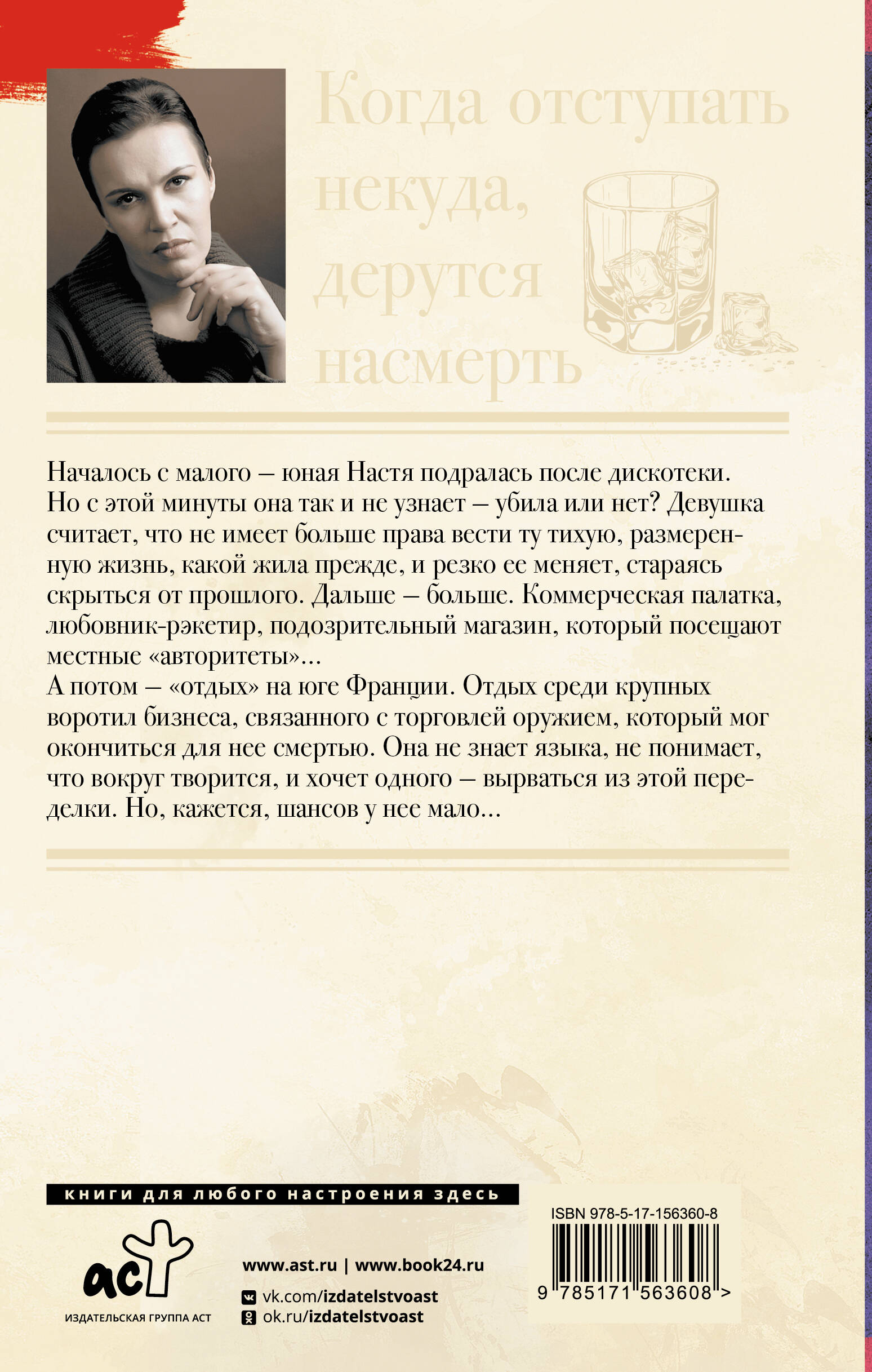 Началось с малого - юная Настя подралась после дискотеки. Но с этой минуты она так и не узнает - убила или нет? Девушка считает, что не имеет больше права вести ту тихую, размеренную жизнь, какой жила прежде, и резко ее меняет, стараясь скрыться от прошлого. Дальше - больше. Коммерческая палатка, любовник-рэкетир, подозрительный магазин, который посещают местные "авторитеты"… А потом - "отдых" на юге Франции. Отдых среди крупных воротил бизнеса, связанного с торговлей оружием, который мог окончиться для нее смертью. Она не знает языка, не понимает, что вокруг творится, и хочет одного - вырваться из этой переделки. Но, кажется, шансов у нее мало…| Издательство | ИЗДАТЕЛЬСТВО "АСТ" |