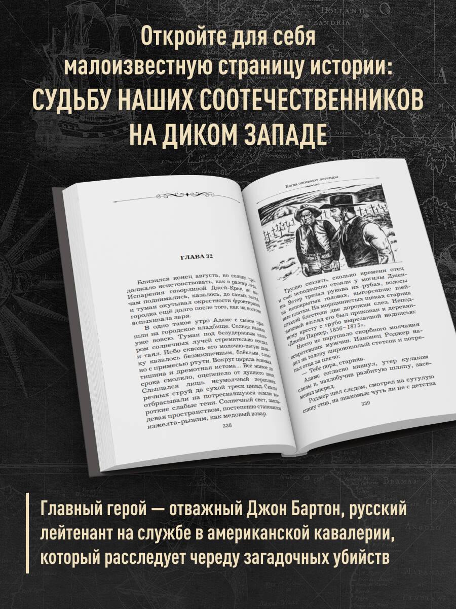 Роман «Когда оживают легенды» - первое обращение в русской литературе к теме вестерна - поистине универсального жанра, максимально вобравшего в себя национальный колорит и в то же время понятного и доступного для восприятия любому читателю. Это захватывающая дух история с элементами мистического триллера и всеми необходимыми приметами эпохи освоения Дикого Запада Северной Америки. Страницы романа вмещают в себя первопоселенцев и индейцев, торговцев и военных, благородных героев и отпетых злодеев. Набор персонажей достаточно традиционный для вестерна и вполне достаточный для того, чтобы немедленно вместе с автором отправиться в увлекательное путешествие - в мир бескрайних прерий и бизонов!| Издательство | ООО "Издательство "Эксмо" |