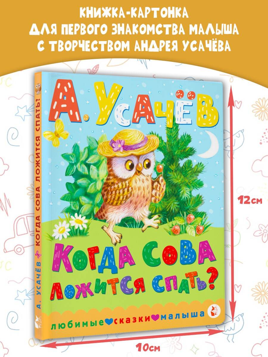 Когда сова ложится спать? А когда встаёт? Сова - ночная птица, а значит, у неё свой, особенный распорядок. В нём есть время и для встречи с подружками, и для уборки, для чтения, вязания и, конечно, для обеда! А что ещё делает сова и когда же она всё-таки ложится спать - узнаете из этой книжки! Андрей Алексеевич Усачёв - классик отечественной детской литературы. Его сказки и стихи - весёлые, смешные и вместе с тем поучительные - очень нравятся и маленьким, и взрослым читателям. Эта книга предназначена именно для малышей: в ней яркие рисунки и крупные буквы, плотный картон не порвется при чтении, а скругленные уголки не повредят маленькие пальчики.| Издательство | Издательство "АСТ" |