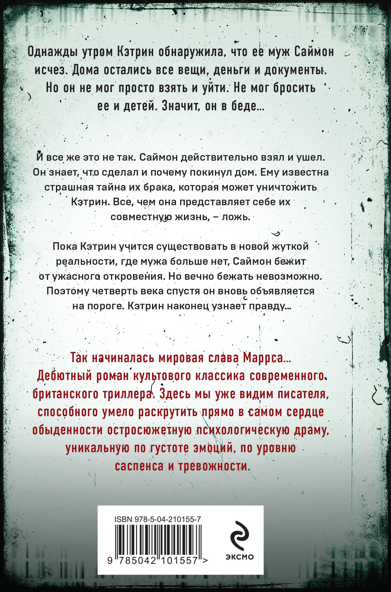 От автора бестселлера «THE ONE. ЕДИНСТВЕННЫЙ», лауреата премии International Thriller Writers Award 2021. Она жаждала правды. Пришло время пожалеть об этом… Однажды утром Кэтрин обнаружила, что ее муж Саймон исчез. Дома остались все вещи, деньги и документы. Но он не мог просто взять и уйти. Не мог бросить ее и детей. Значит, он в беде… И все же это не так. Саймон действительно взял и ушел. Он знает, что сделал и почему покинул дом. Ему известна страшная тайна их брака, которая может уничтожить Кэтрин. Все, чем она представляет себе их совместную жизнь, - ложь. Пока Кэтрин учится существовать в новой жуткой реальности, где мужа больше нет, Саймон бежит от ужасного откровения. Но вечно бежать невозможно. Поэтому четверть века спустя он вновь объявляется на пороге. Кэтрин наконец узнает правду… Так начиналась мировая слава Маррса… Дебютный роман культового классика современного британского триллера. Здесь мы уже видим писателя, способного умело раскрутить прямо в самом сердце обыденности остросюжетную психологическую драму, уникальную по густоте эмоций, по уровню саспенса и тревожности. _____________________________________________________________________ «Куча моментов, когда просто отвисает челюсть. Берясь за эту книгу, приготовьтесь к шоку!» - Cleopatra Loves Books «Необыкновенно впечатляющий дебют. Одна из тех книг, что остаются с тобой надолго». - Online Book Club «Стильное и изящное повествование; автор нашел очень изощренный способ поведать историю жизни». - Littleebookreviews «Ищете книгу, бросающую в дрожь? Если наткнулись на эту, ваш поиск закончен». - TV Extra Особенности издания: объемное тиснение, глянцевый лак.| Издательство | ООО "Издательство "Эксмо" |