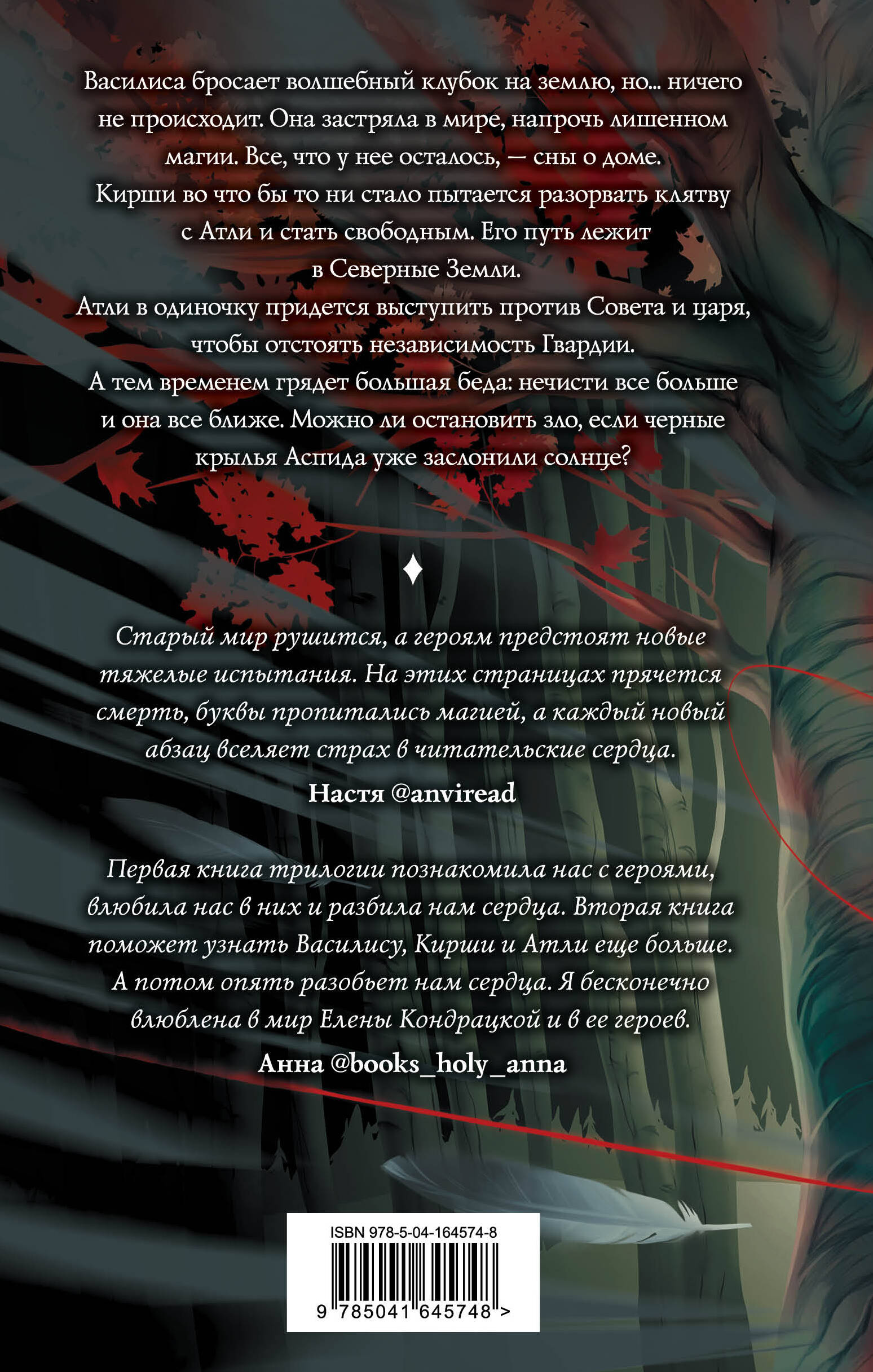 Василиса бросает волшебный клубок на землю, но... ничего не происходит. Она застряла в мире, напрочь лишенном магии. Все, что у нее осталось - сны о доме. Кирши во что бы то ни стало пытается разорвать клятву с Атли и стать свободным. Его путь лежит в Северные Земли. Атли в одиночку придется выступить против Совета и царя, чтобы отстоять независимость Гвардии. Но это не единственная проблема: нечисти становится все больше и она все ближе подбирается к Даргороду. Грядет беда, которая окажется куда страшнее борьбы за власть. Можно ли остановить зло, если черные крылья Аспида уже заслонили солнце? Вторая книга цикла «Дивные берега», мгновенно завоевавшего любовь ценителей фэнтези со славянским колоритом. История Василисы, Кирши и Атли продолжается. Тираж «У Ворона две жизни», первого романа цикла, разошелся меньше чем за месяц и сразу уже ушел на дополнительный тираж. Вмешательство богов, интриги, заговоры и любовный треугольник. Сочетание славянского колорита с элементами восточной эстетики.| Издательство | ООО "Издательство "Эксмо" |