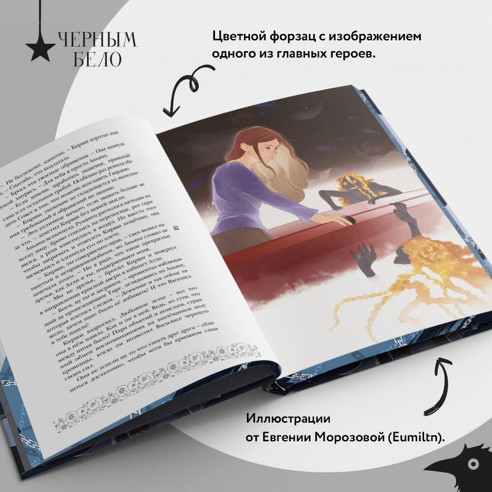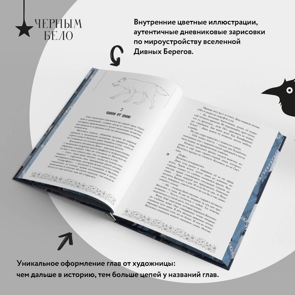Василиса бросает волшебный клубок на землю, но... ничего не происходит. Она застряла в мире, напрочь лишенном магии. Все, что у нее осталось - сны о доме. Кирши во что бы то ни стало пытается разорвать клятву с Атли и стать свободным. Его путь лежит в Северные Земли. Атли в одиночку придется выступить против Совета и царя, чтобы отстоять независимость Гвардии. Но это не единственная проблема: нечисти становится все больше, и она все ближе подбирается к Даргороду. Грядет беда, которая окажется куда страшнее борьбы за власть. Можно ли остановить зло, если черные крылья Аспида уже заслонили солнце? Коллекционное переиздание второй части цикла «Дивные берега»! Василиса заперта в мире без магии. Ей предстоит приложить все усилия, чтобы вернуться домой. Сочетание славянского колорита с элементами восточной эстетики. Внутренние цветные иллюстрации, аутентичные дневниковые зарисовки по мироустройству вселенной Дивных Берегов. Дополнительная глава! Воронам предстоит поймать чудовище, поселившееся в лесу. Уникальное оформление глав от художницы: чем дальше в историю, тем больше цепей у названий глав. Цветной форзац с изображением одного из главных героев. Иллюстрации от Евгении Морозовой (Eumiltn).| Издательство | ООО "Издательство "Эксмо" |