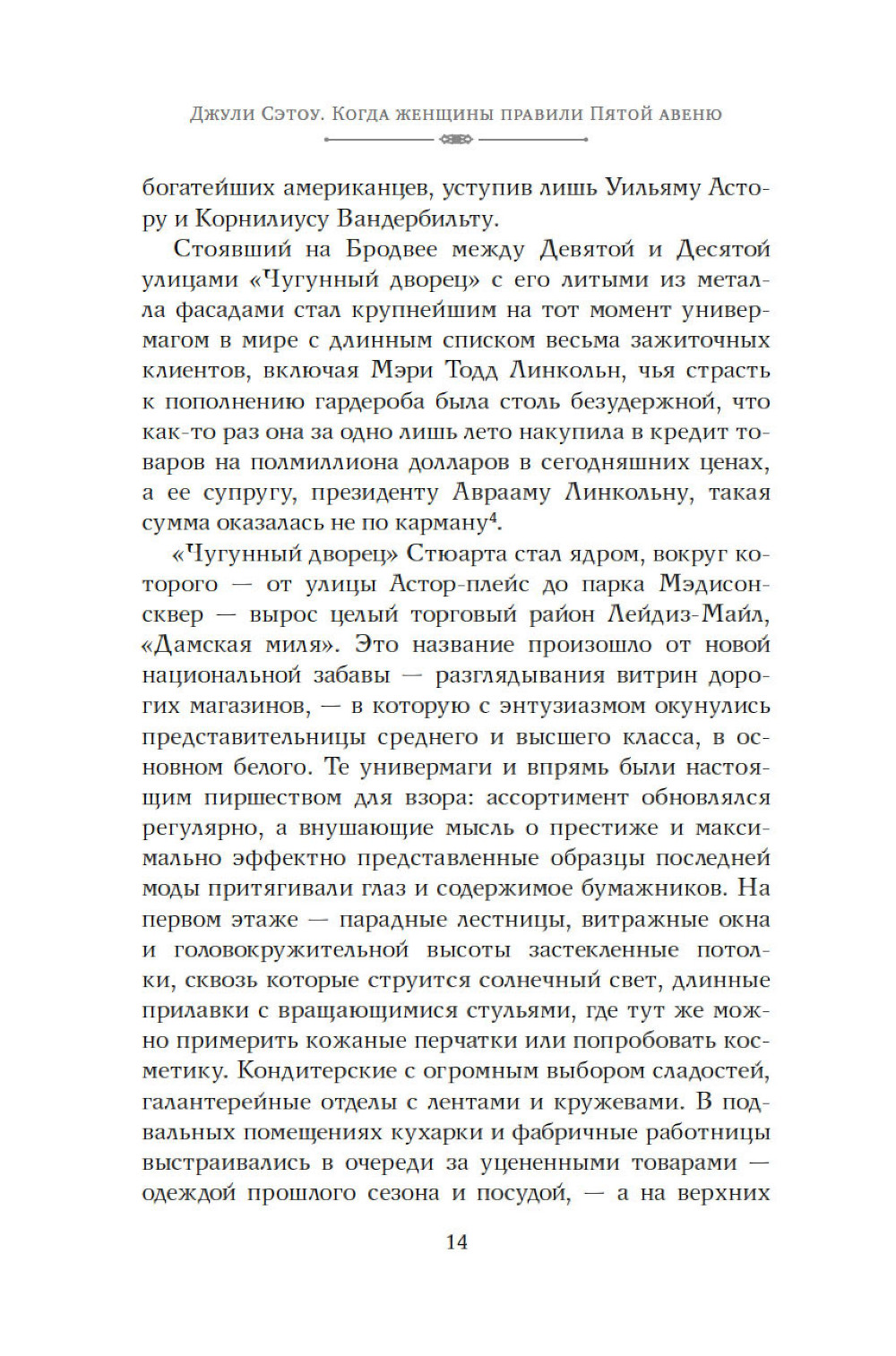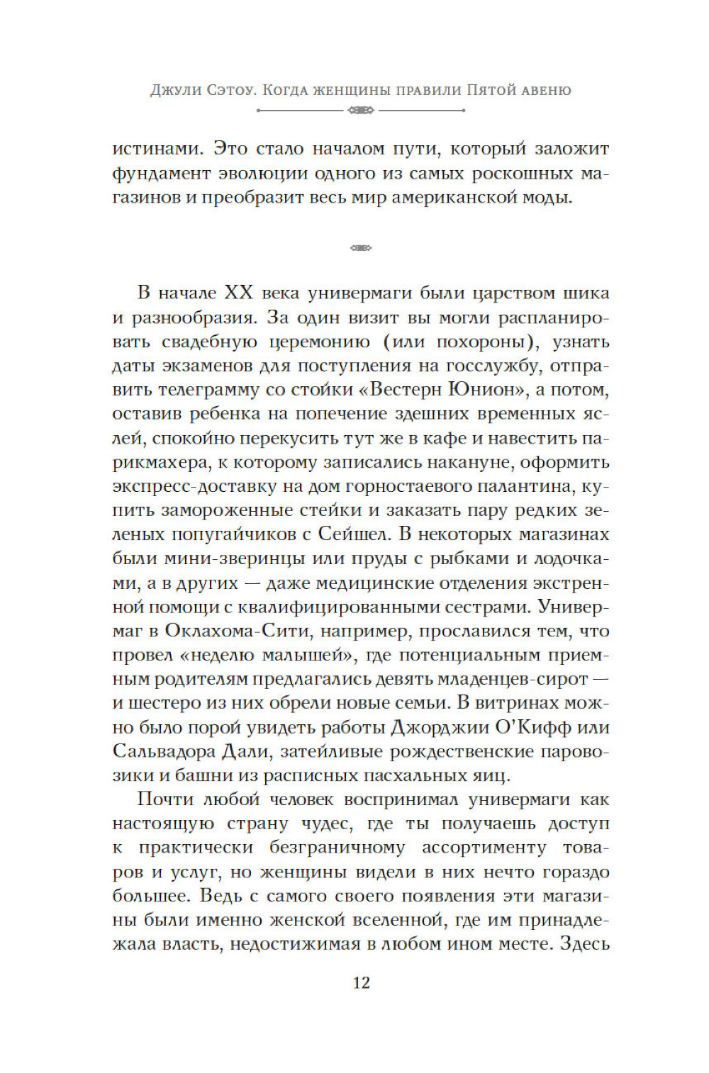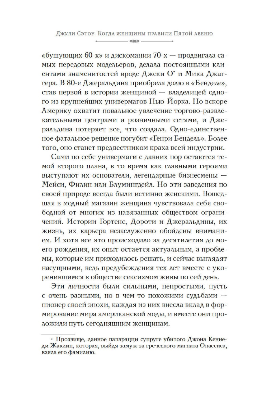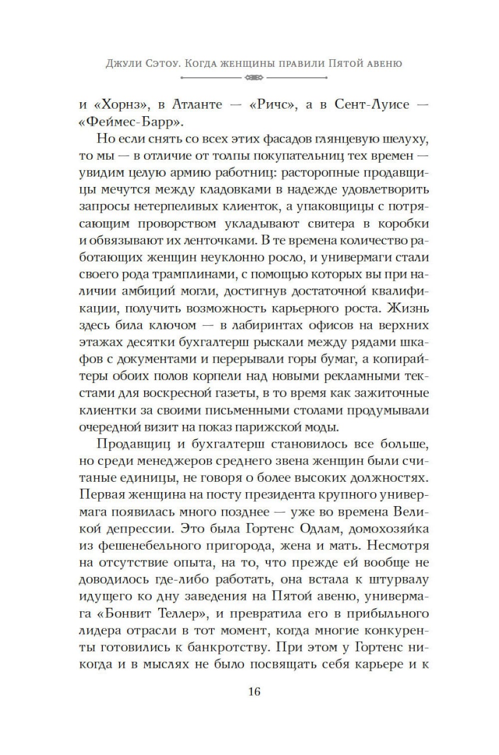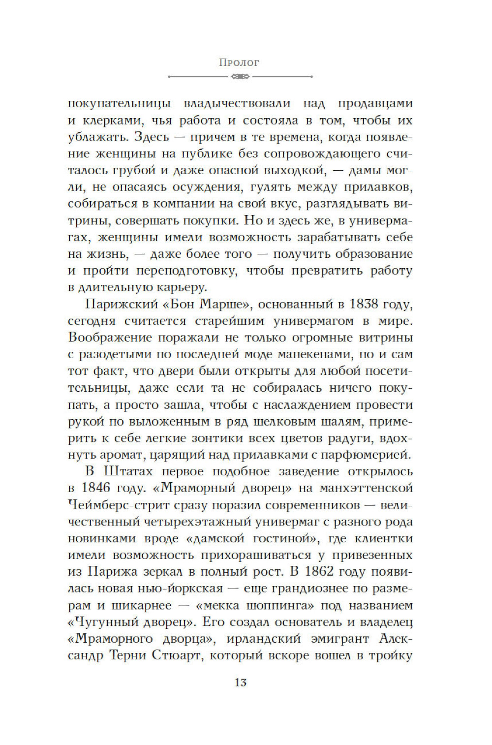 Известная американская журналистка реконструирует жизненный и карьерный путь женщин, которые руководили крупными универмагами Нью-Йорка в 1920-е - 1960-е годы и превратили их в рай для покупательниц всех возрастов и социальных слоев. Благодаря этим женщинам американская модная индустрия обрела собственное лицо и перестала слепо копировать европейскую, прежде всего парижскую моду. Каждая из героинь книги - сильная и яркая личность, чей пример помог миллионам женщин поверить в себя и сменить домашнее хозяйство на профессиональную карьеру.| Издательство | КоЛибри |