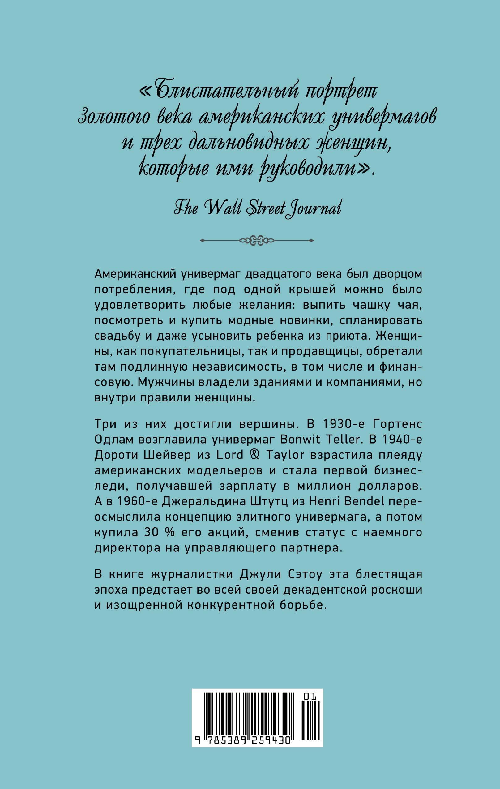 Известная американская журналистка реконструирует жизненный и карьерный путь женщин, которые руководили крупными универмагами Нью-Йорка в 1920-е - 1960-е годы и превратили их в рай для покупательниц всех возрастов и социальных слоев. Благодаря этим женщинам американская модная индустрия обрела собственное лицо и перестала слепо копировать европейскую, прежде всего парижскую моду. Каждая из героинь книги - сильная и яркая личность, чей пример помог миллионам женщин поверить в себя и сменить домашнее хозяйство на профессиональную карьеру.| Издательство | Азбука-Аттикус Издат.группа ООО |