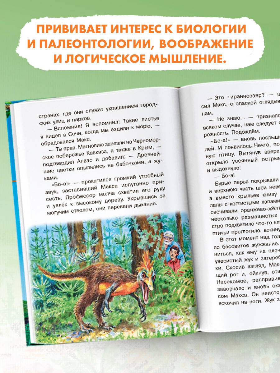 Мечтали ли вы когда-нибудь заглянуть в далекое прошлое и увидеть живых динозавров? Думаем, что многие бы от этого не отказались. Поэтому так интересно наблюдать за захватывающим путешествием обычного школьника Максима Девяткина и профессора биологии Александра Васильевича Рябинина, которые случайно попадают из доисторического портала музея прямо в далекое прошлое... Опасности подстерегают их на каждом шагу, но тех, кто по-настоящему увлекается динозаврами, ничто не испугает! Для младшего и среднего школьного возраста.| Издательство | Издательство "АСТ" |