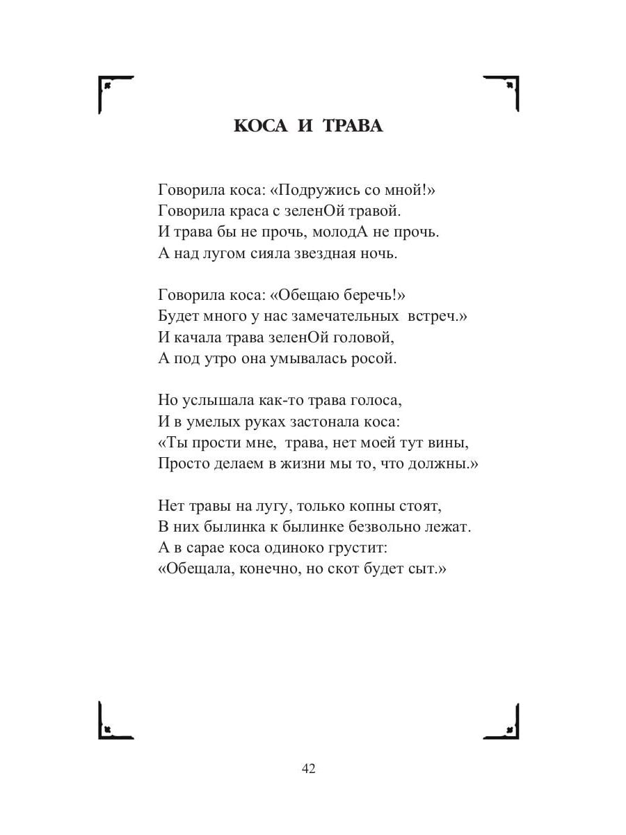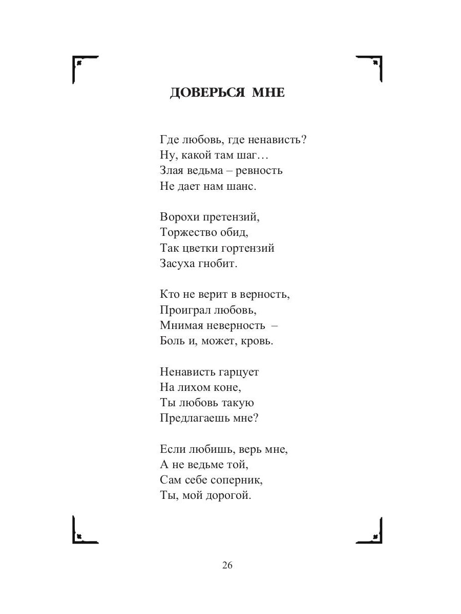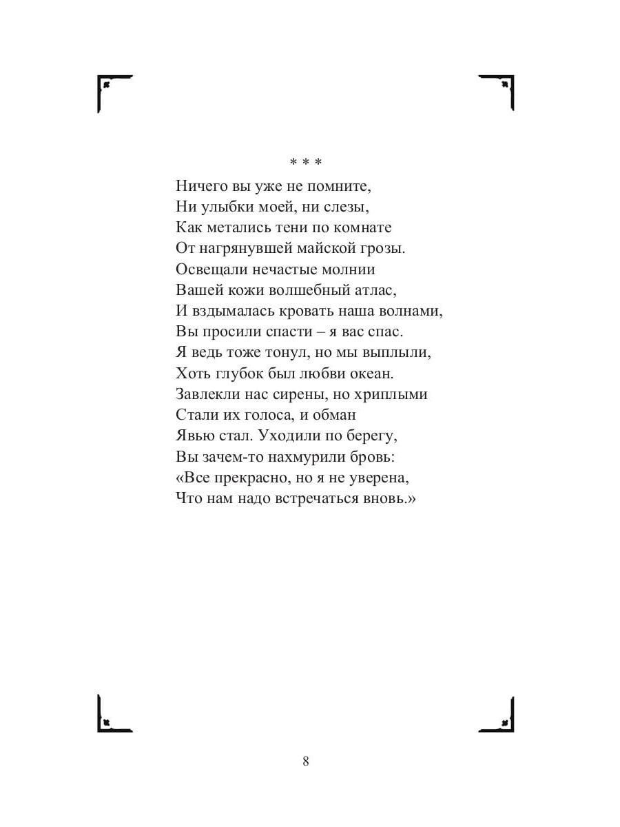 В этой небольшой книге много новых стихотворений. Как и в предыдущих, это - философские размышления, любовная лирика, мысли о связи человека с природой, о творчестве, о месте каждого из нас на Земле. Стихи автора отличают искренность и напевность. Недаром на них написано десятки песен и романсов, которые исполняются профессиональными певцами и самодеятельными коллективами.